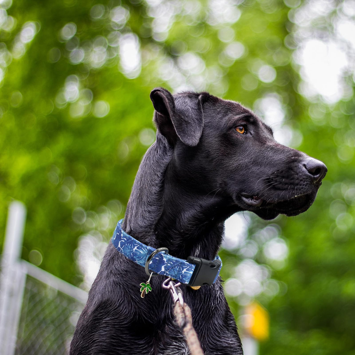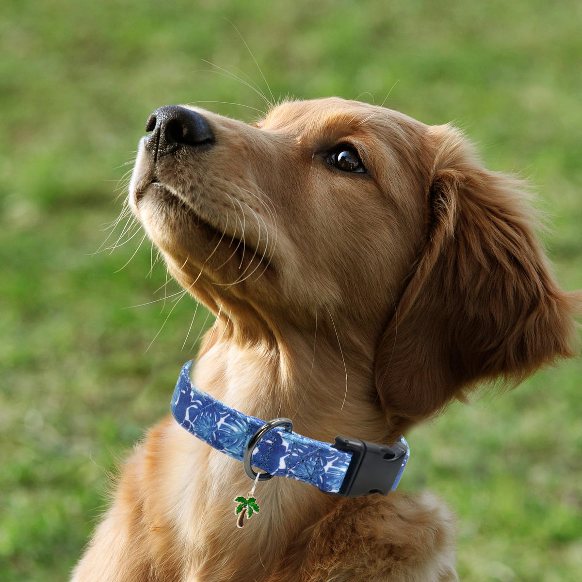 Flower Patterns Dog Collar With Accessories, Soft Cotton Dog Collars For Small Medium Large Female And Male Dogs(Palm Frond L)