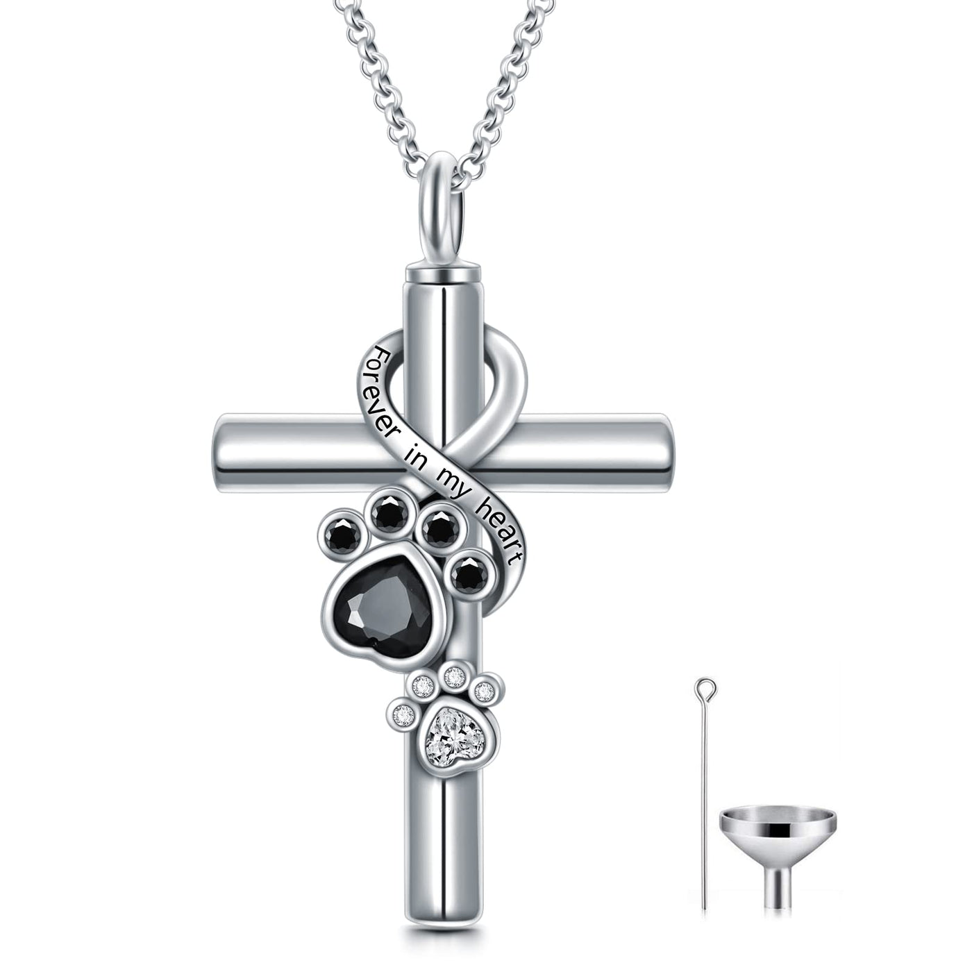 Flpruy Pet Cremation Jewelry - Animal Paw Print Memorial Cross Ashes Necklaces For Dog, Cat, Forever In My Heart