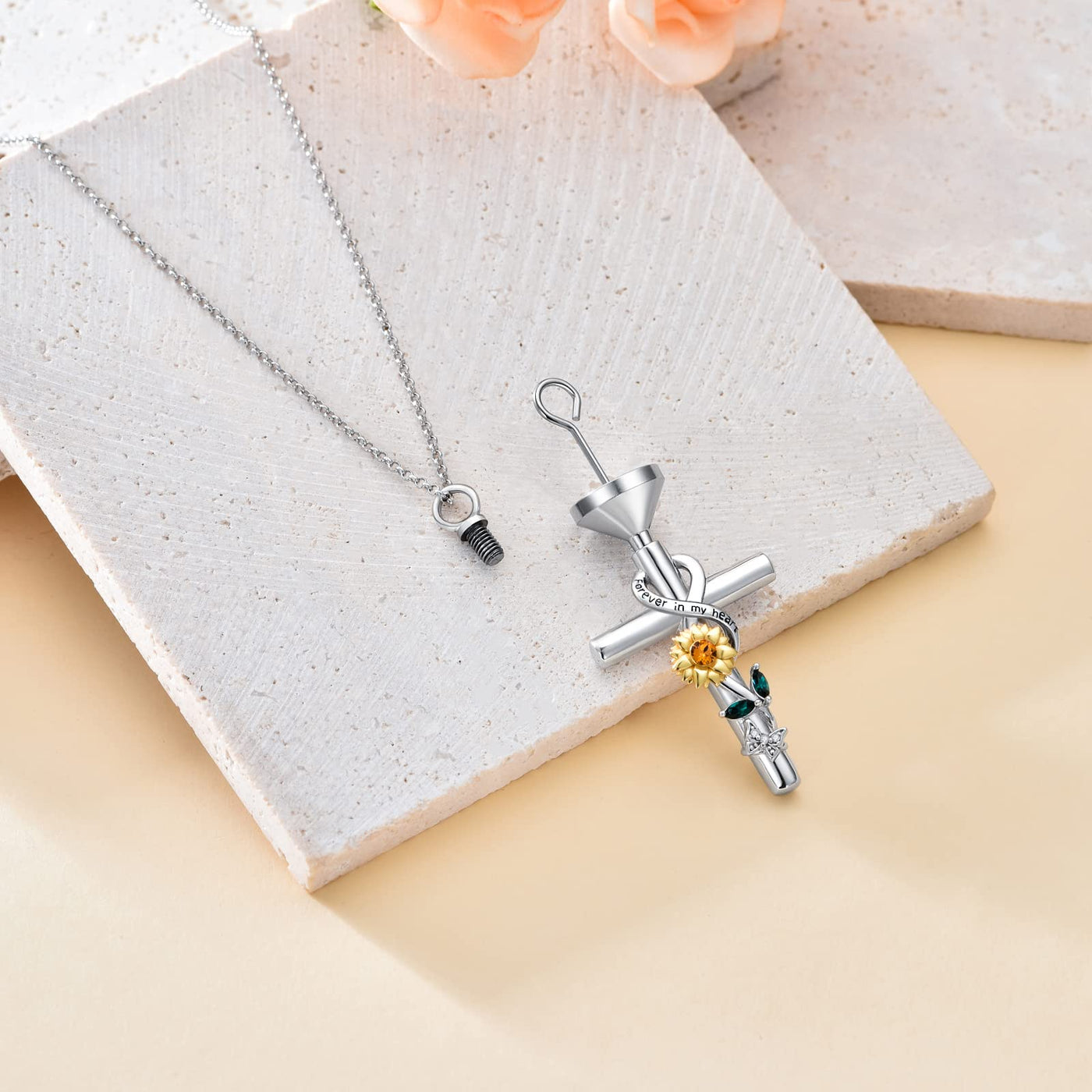 Flpruy Sunflower Urn Necklaces For Ashes 925 Sterling Silver Sunflower Cross Urn Pendant Cremation Keepsake Memorial Pendant Nec