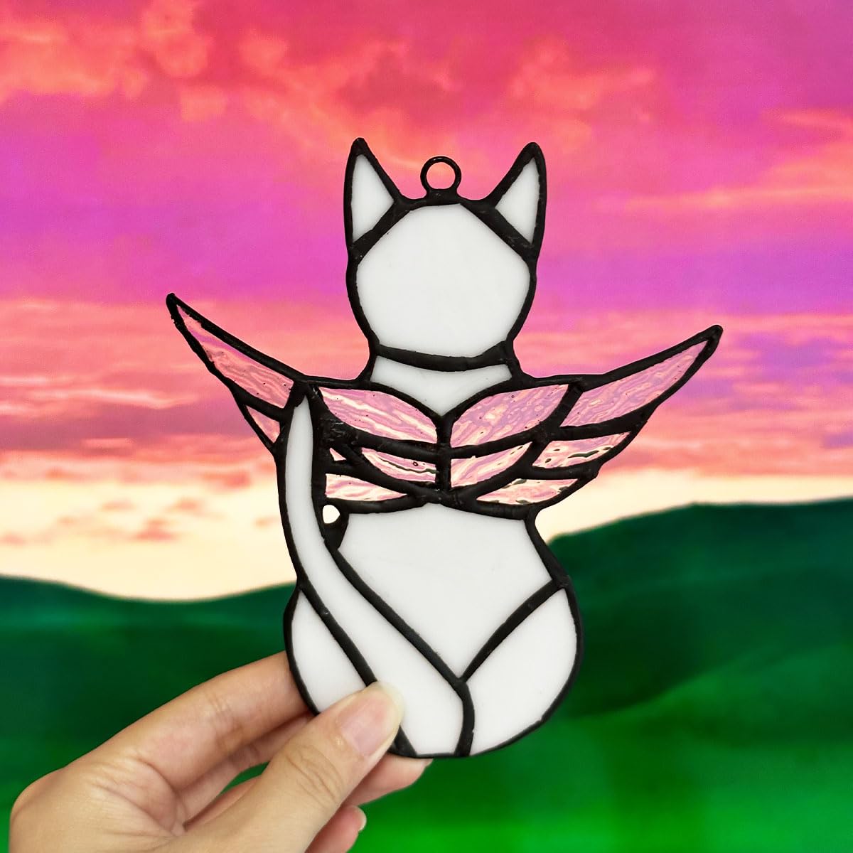 Fluffycaptain Cat Memorial Gift For Cat Lovers,Angel Cat With Colorful Wings,Handcrafted Stained Glass Cat Suncatchers Decor,Cat Lovers Gifts Ornaments,Pet Memorial Sympathy Gifts Decoration Bereavement Gifts For Loss Of Pet Whether Used As A Home Decoration Or Given As A Sincere Gift, We Believe That This Product Will Exceed Your Expectations. While It'S Normal To Have Bubbles In Stained Glass And Every Stained Glass Sheet Is Unique, We Ensure That Every Step Of The Crafting Process Is Done With Care To Ensure The Highest Quality Product. Please Note:Due To Reflection Problems Or Computer Setting Differences, There May Be A Slight Color Deviation Compared To The Actual Item Shown In The Images.