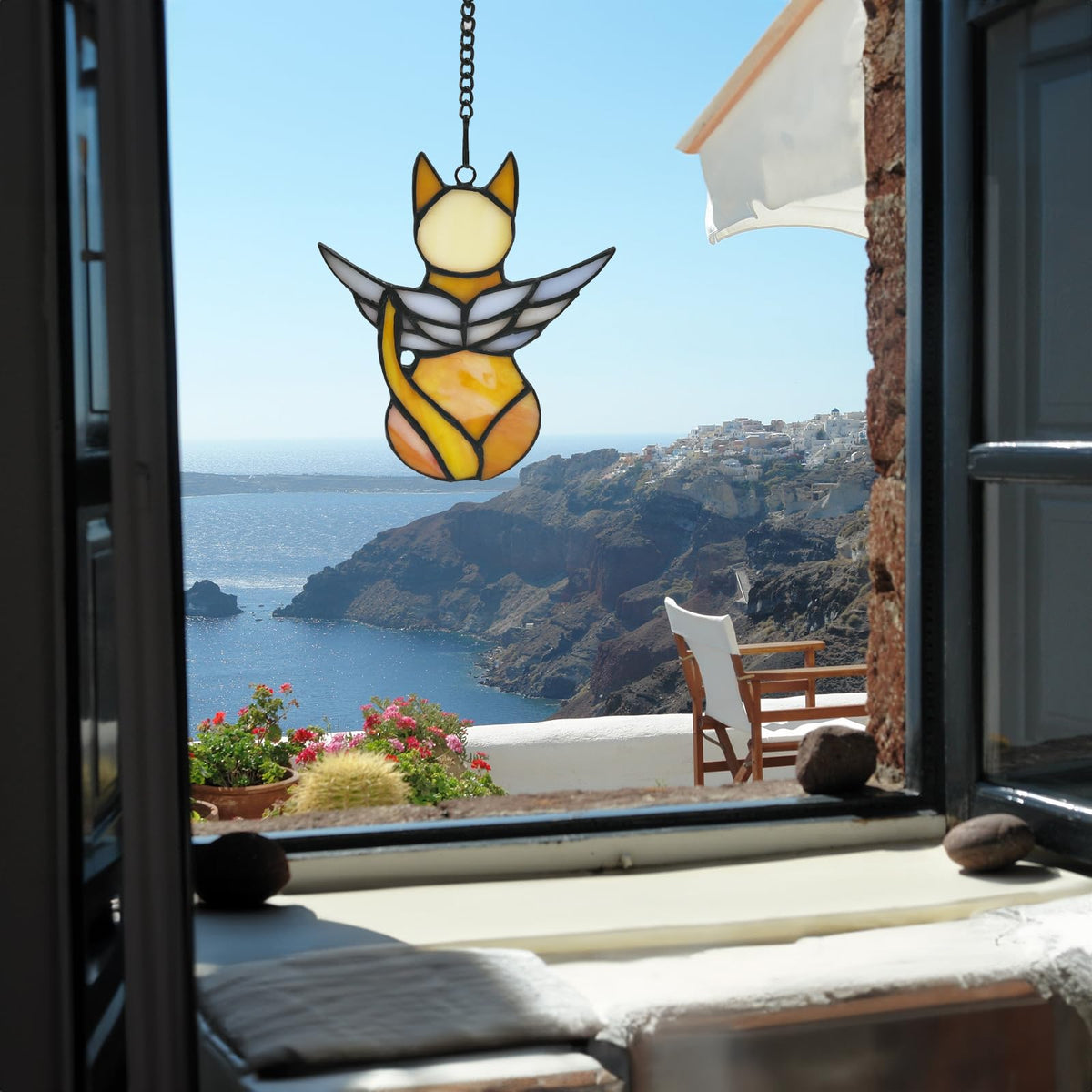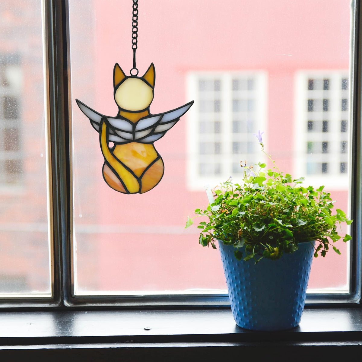 Fluffycaptain Handcrafted Stained Glass Orange Angel Cat Suncatcher - Pet Memorial Gift With Colorful Wings, Cat Lovers Sympathy