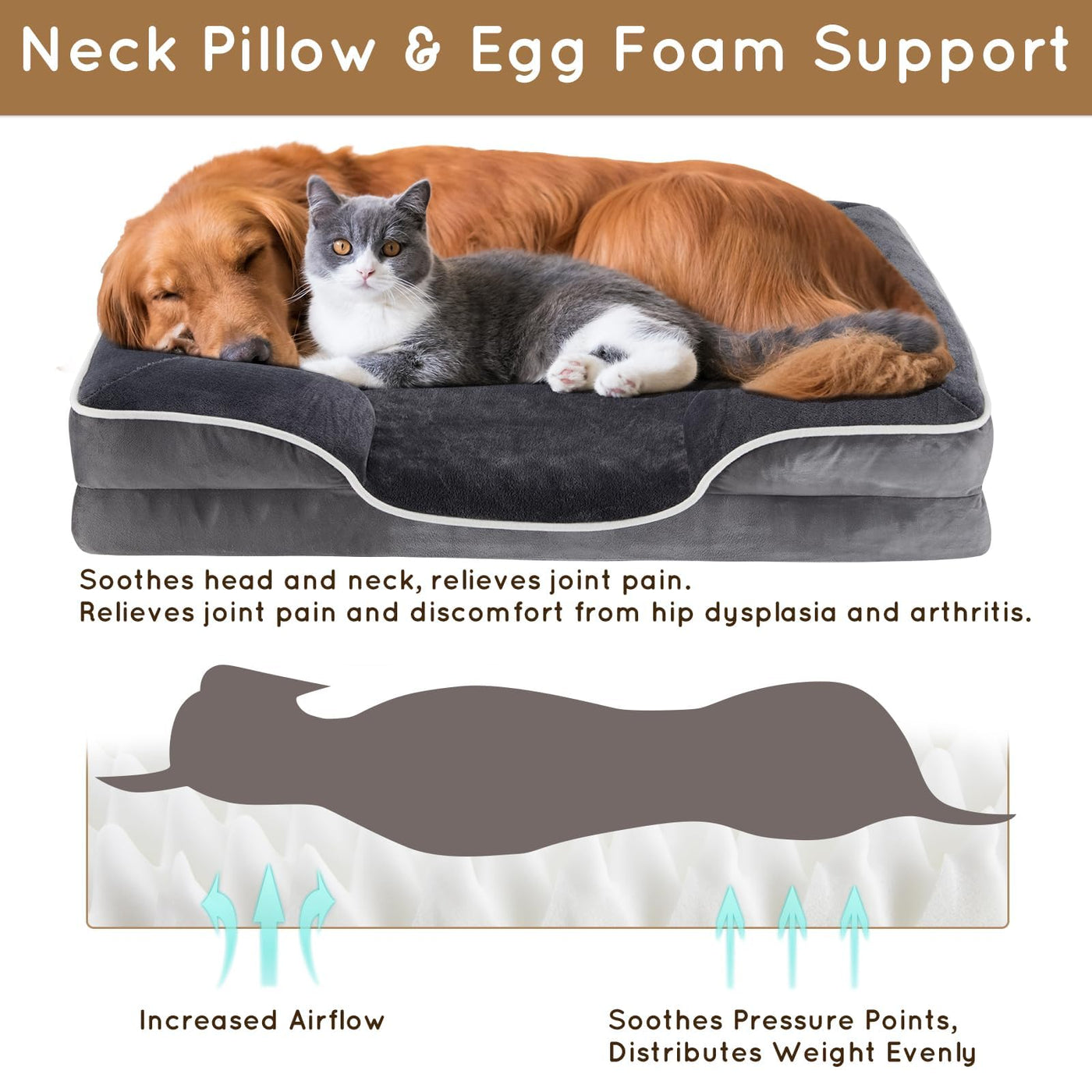 Fluffydream 28'' Orthopedic Dog Bed, Memory Egg-Crate Foam Dog Bed With Washable Removable Cover, Grey