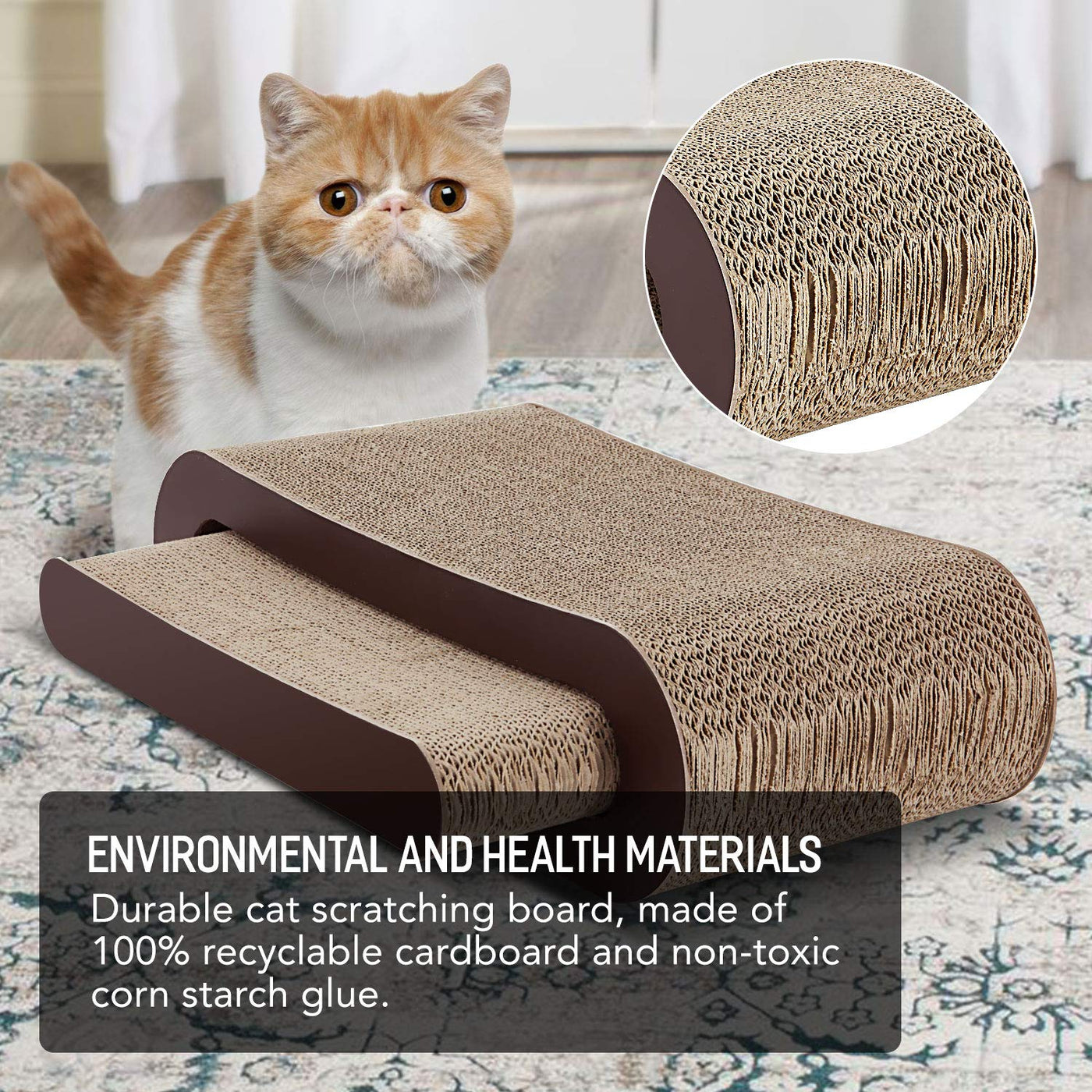 Durable And Materials: Our Cat Scratch Board Are Made From Recyclable Corrugated Cardboard. It Contains A High-Density Five-Layer Corrugated Paper That Confirm Durability And Is Therefore Difficult To Be Torn By Cats. All Materials Are Tested Using International Safety Standards. Unique Design: Cat Scratch Cards Boards With Wave Design Lets The Cat Scratch And Lounge On It Comfortably. The Attractive Scratch Board Design Blends Easily With Home D Cor And Can Be Placed Anywhere In The Room. Tip: If Your Cat Is Not Interested In The Scratcher, Use Some Snacks And Toys To Guide Them To The Board.