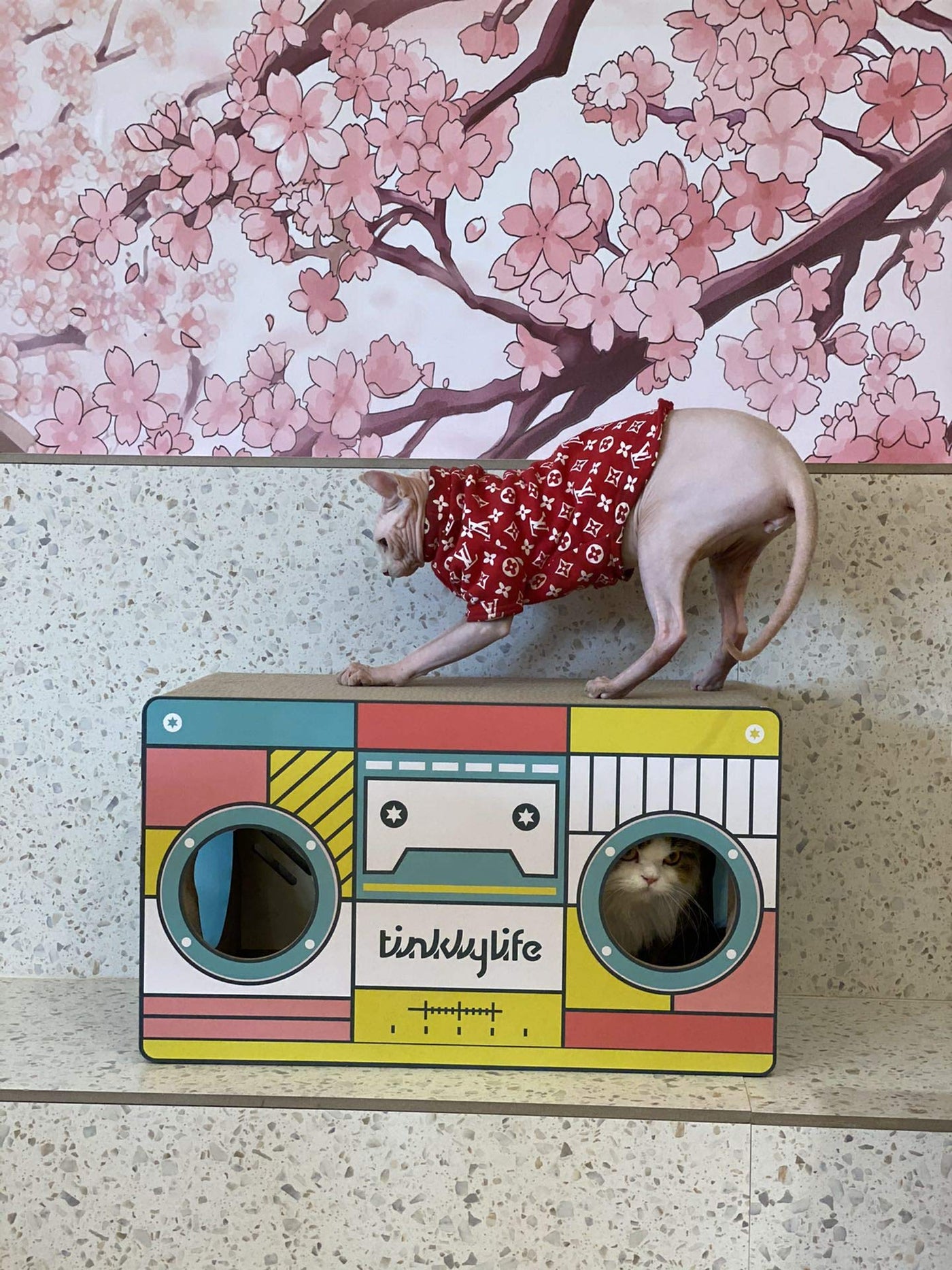 Fluffydream Cat Scratcher Cardboard, Rectangle Shape Stereo Pattern Cat Scratching House Bed, Green Colour