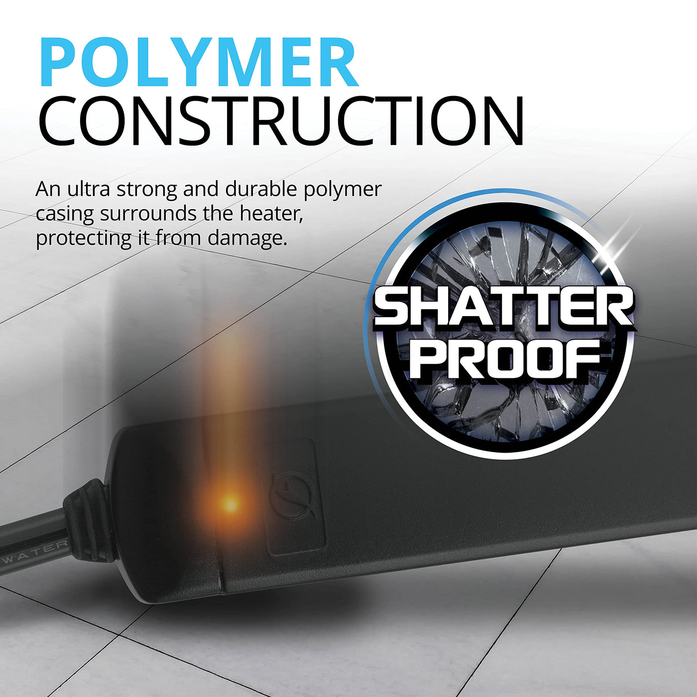 Q: Is the Fluval P50 aquarium heater safe for my fish?A: Yes, the Fluval P50 is constructed with shatterproof polymer material, ensuring durability and safety for your aquatic life by preventing overheating and damage.