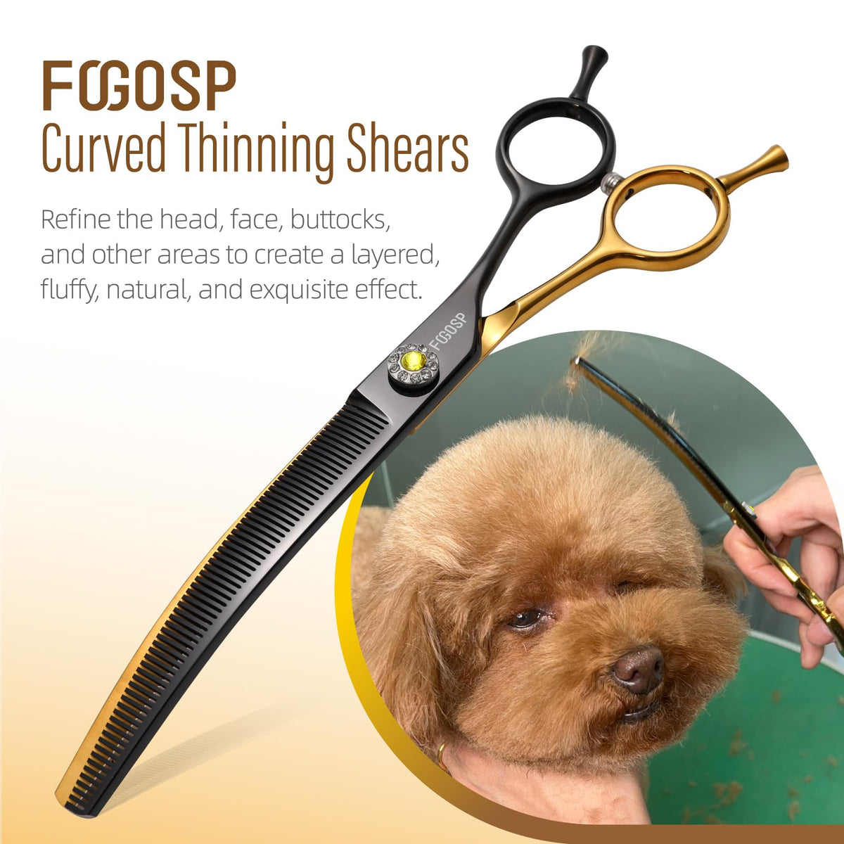 Fogosp 45Curved Dog Grooming Scissors Curved Thinning Shears 2Pcs Combo(Black&Gold)