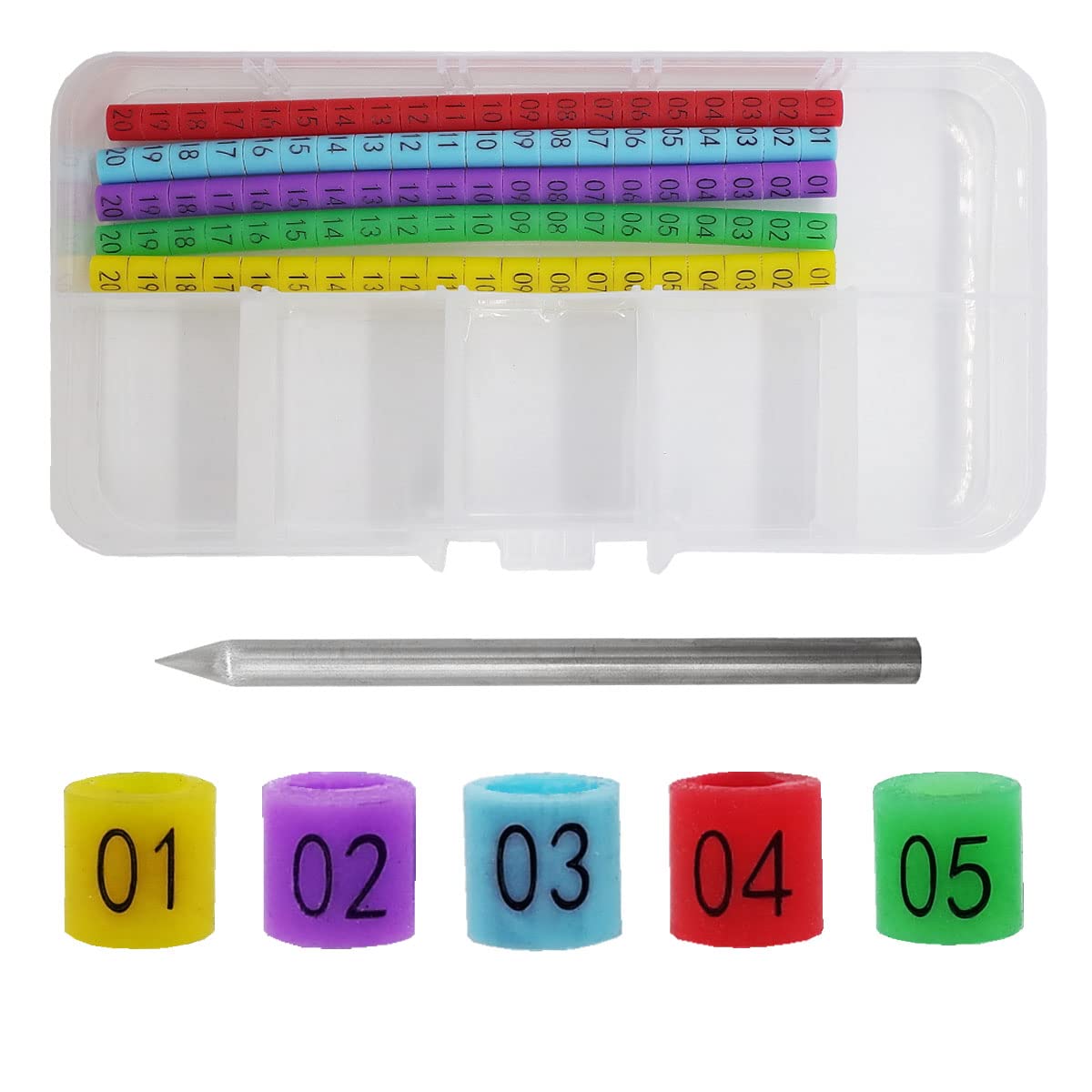 1. Bright Colors And Numbers Make It Easy To Identify.Use These Ring Bands To Identify Similar Looking Birds Keep Different Breeds Apart. 2. Package:1Installer + 100 Mixed Color Bird Rings + Plastic Storage Box. 3. Material: Silicone Material Soft And Elastic Does Not Hurt Birds. 4. Size: Bird Ring Diameter 3Mm.For Gouldian Zebra Finch Canary Society Etc.