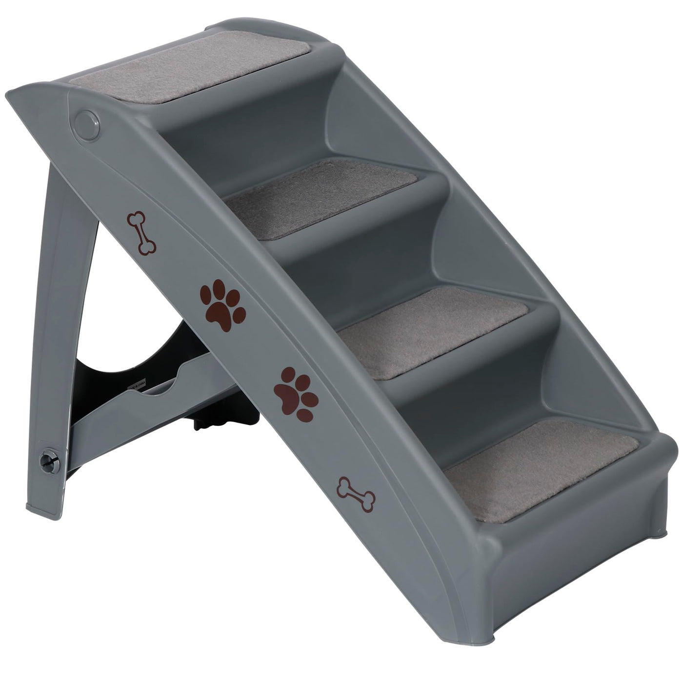 Features: Helps pets reach their favorite places Eliminate stress on your pet. Foldable design for easy storage Durable plastic material for indoor and outdoor use. Built-in side rails keep pet secure Set up easily, no tools required. Removable carpet tread for easy clean.