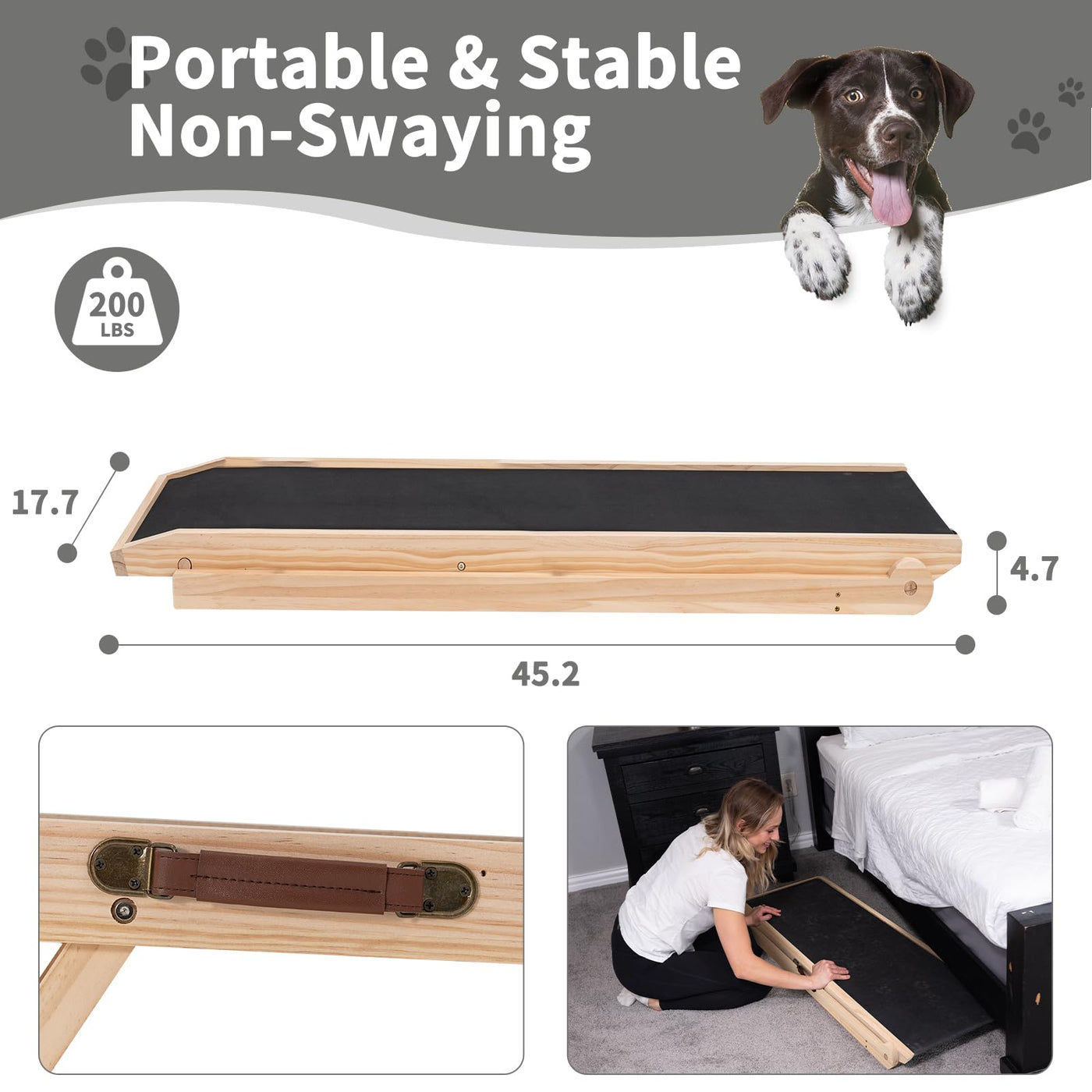 Folding Wooden Dog Ramp For Bed, Couch & Car,45In Long- 5 Level Adjustable Pet Ramp, Non-Slip Rubber Mat, 17.7'' Extra Wide - Su