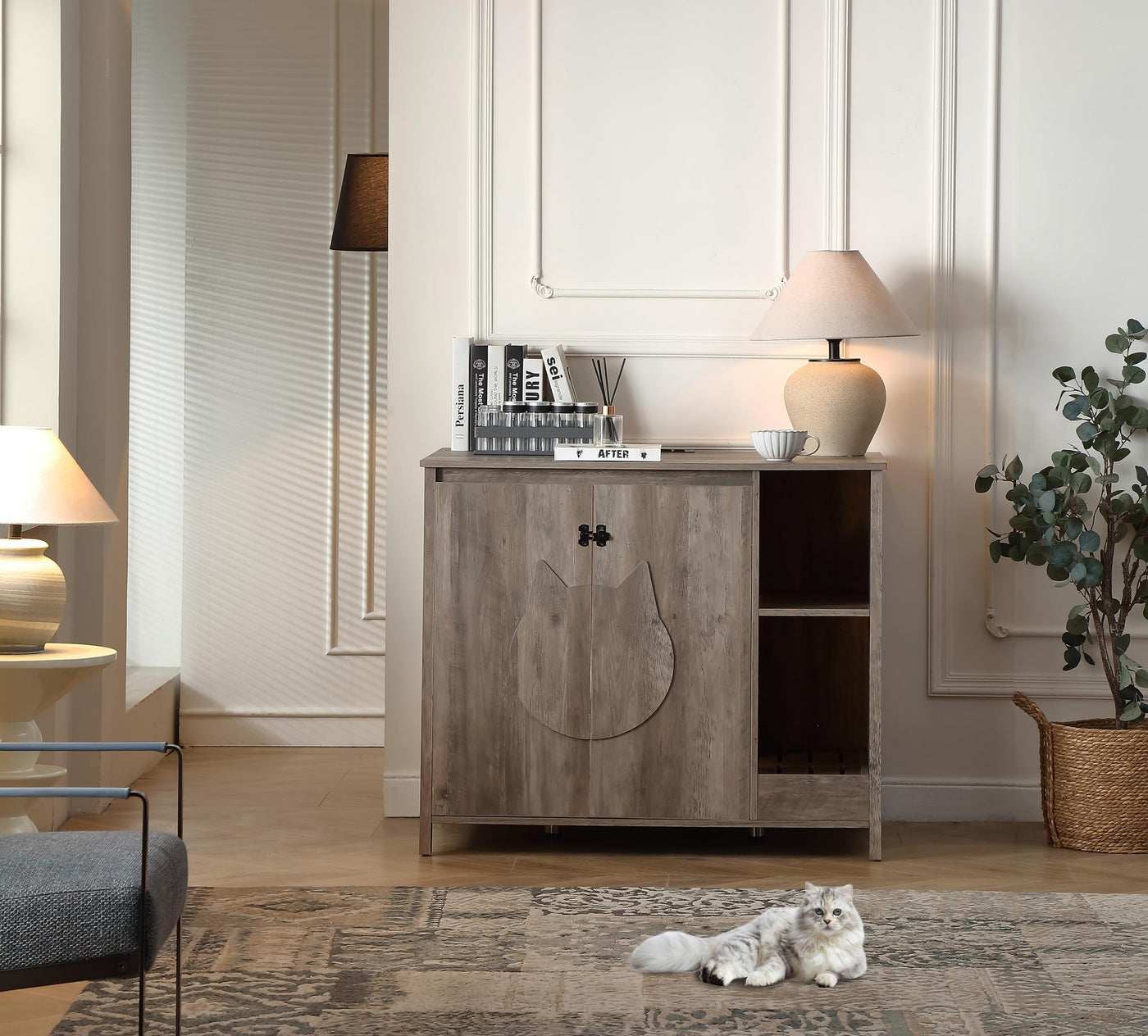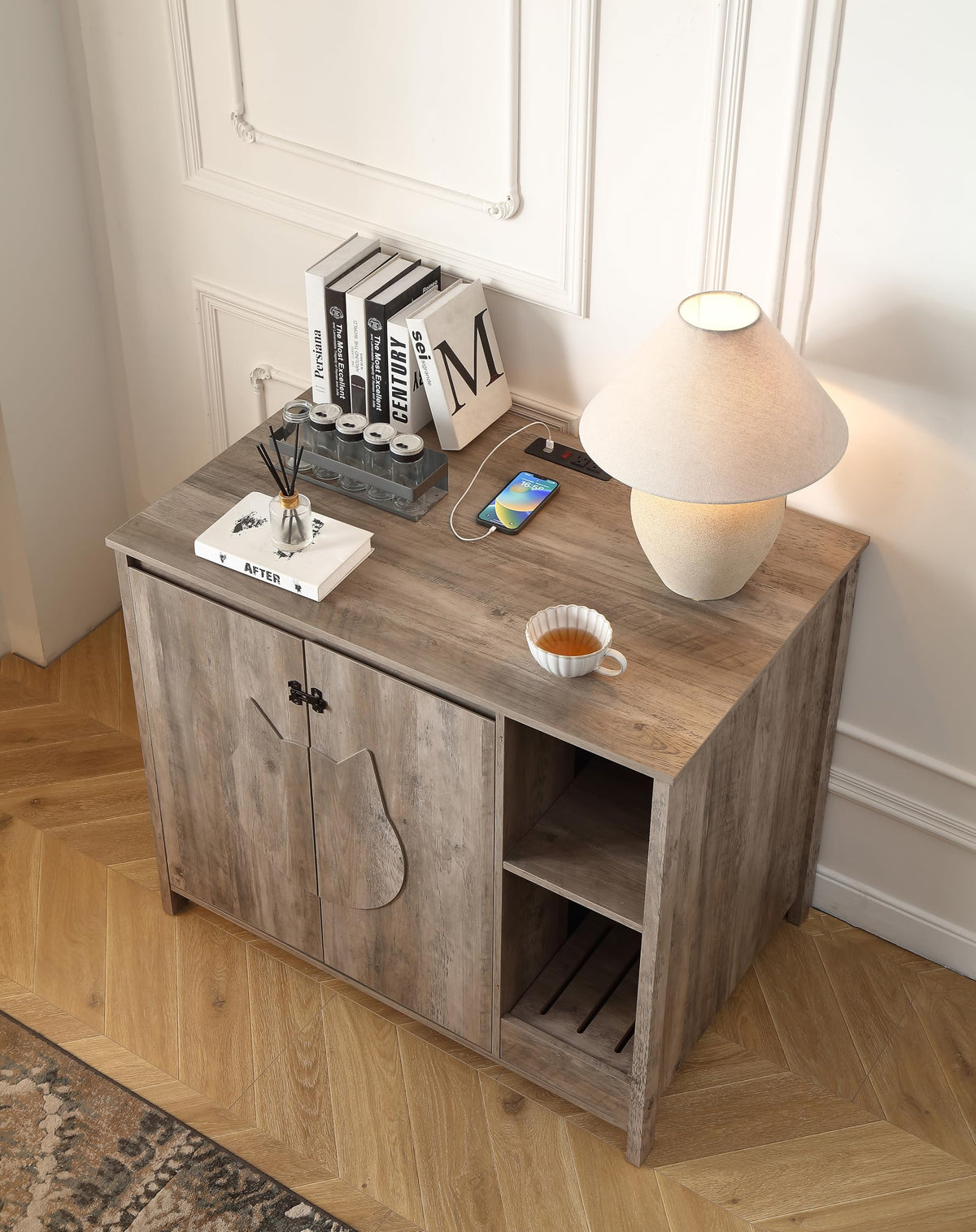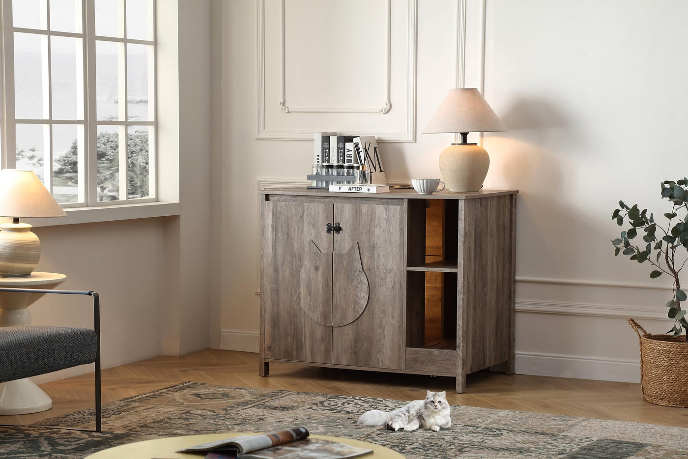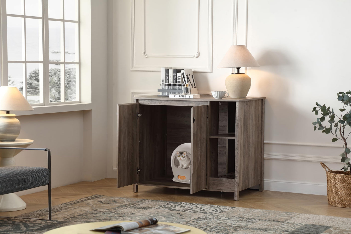 Forest Gravity Cat-Faced Doors Cat Litter Robot Enclosure,Automatic Litter Box Enclosure For Litter Robot 3/4,Power Outlet For L
