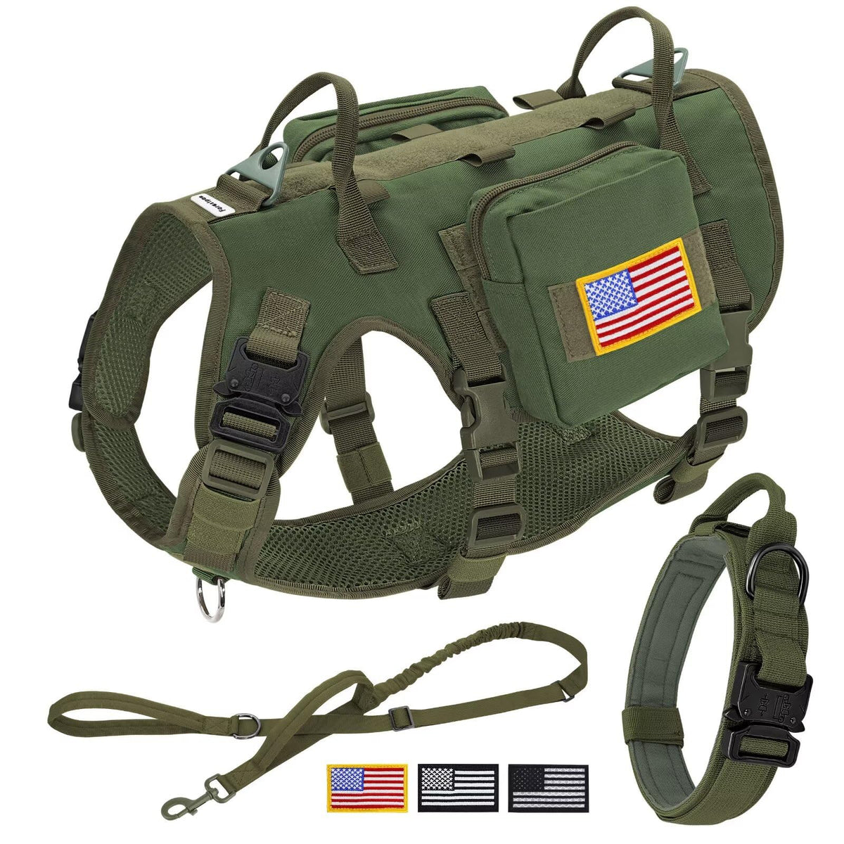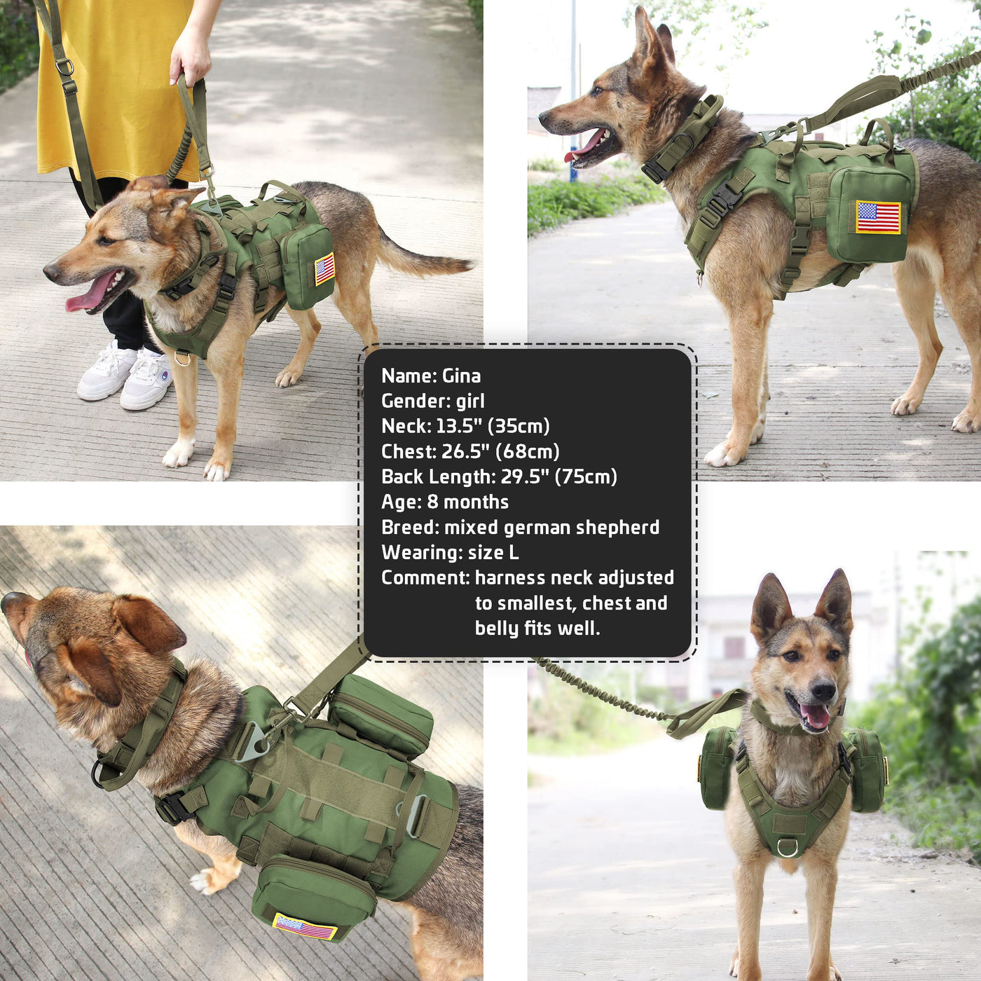 Forestpaw Tactical Dog Vest Harness And Easy Control Training Dog Collar With Bungee Dog Leash Set No Pull Military Dog Harness With Backpack For Medium Large Dogs-Green L