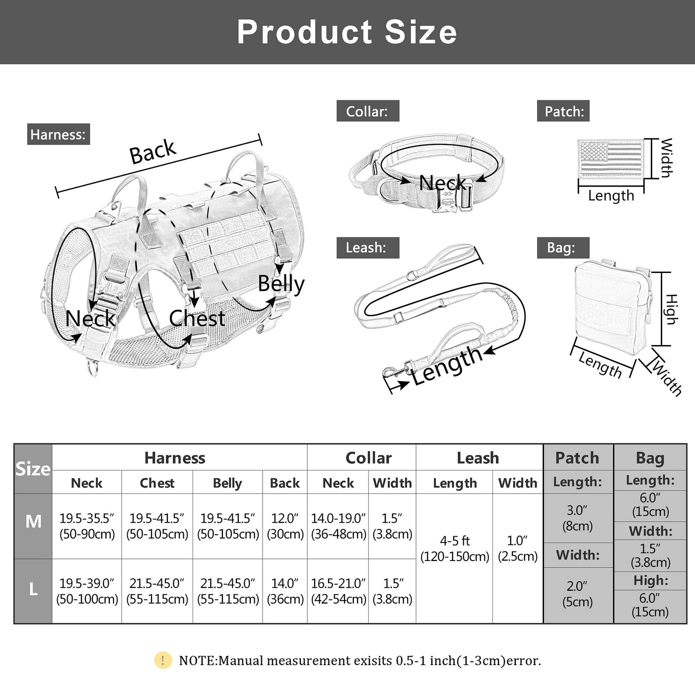 Well constructed---The set of tactical harness collar and leash is made of durable nylon fabric with mesh form inside,Pouches are made of nylon material,collar and leash are made of nylon wepping with padded form;