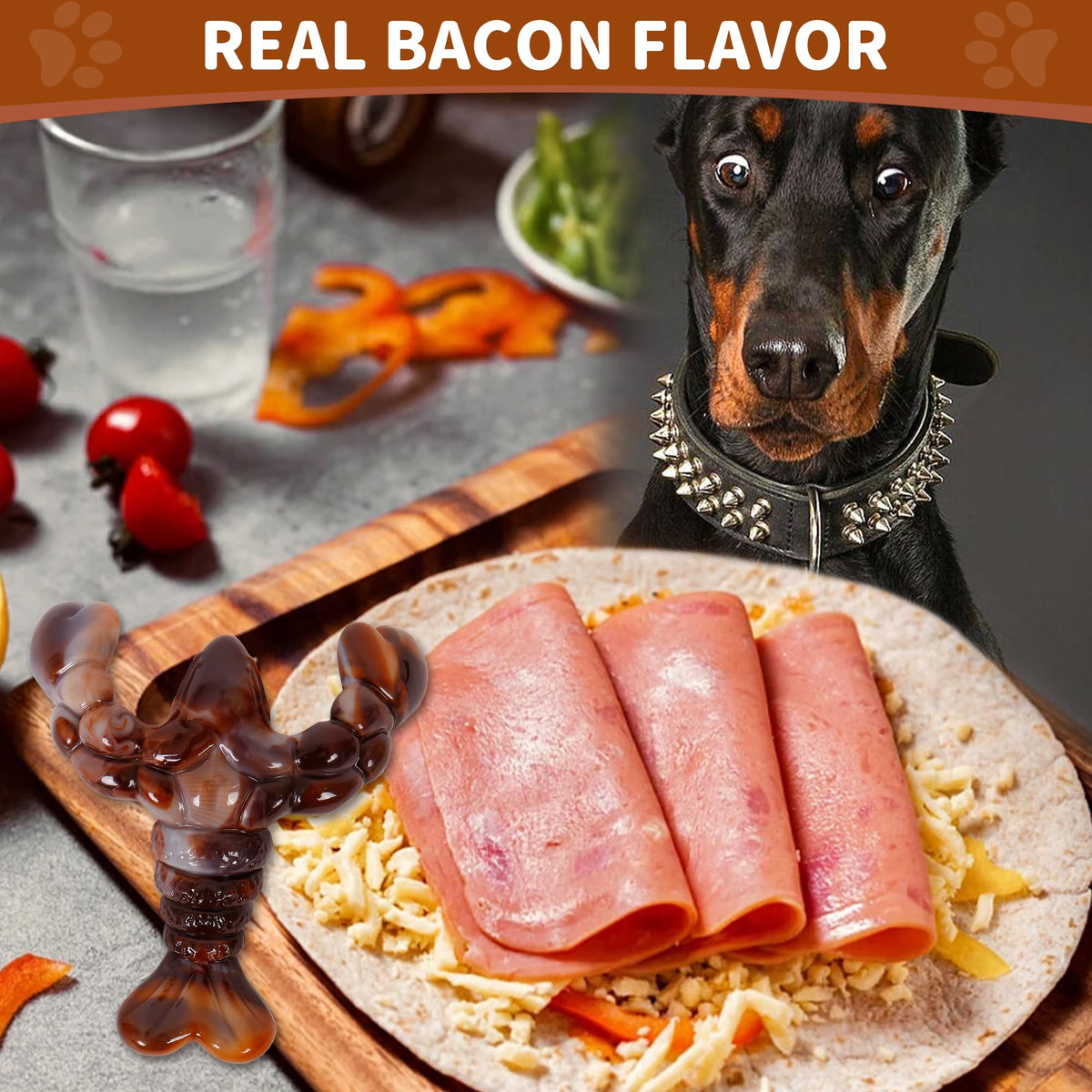 Forfunyou Indestructible Dog Toys For Aggressive Chewers - Large & Medium-Large Breeds, 1-Pack Bacon Flavored Tough Dog Bones Gi