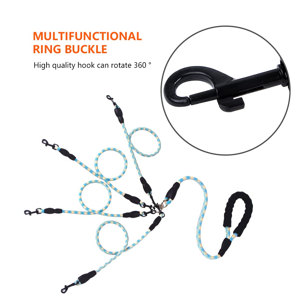 Four Dog Training Leash With Reflective, 360 Swivel No Tangle, Comfortable For Large Medium Small Dogs (Blue, Four Leashes)