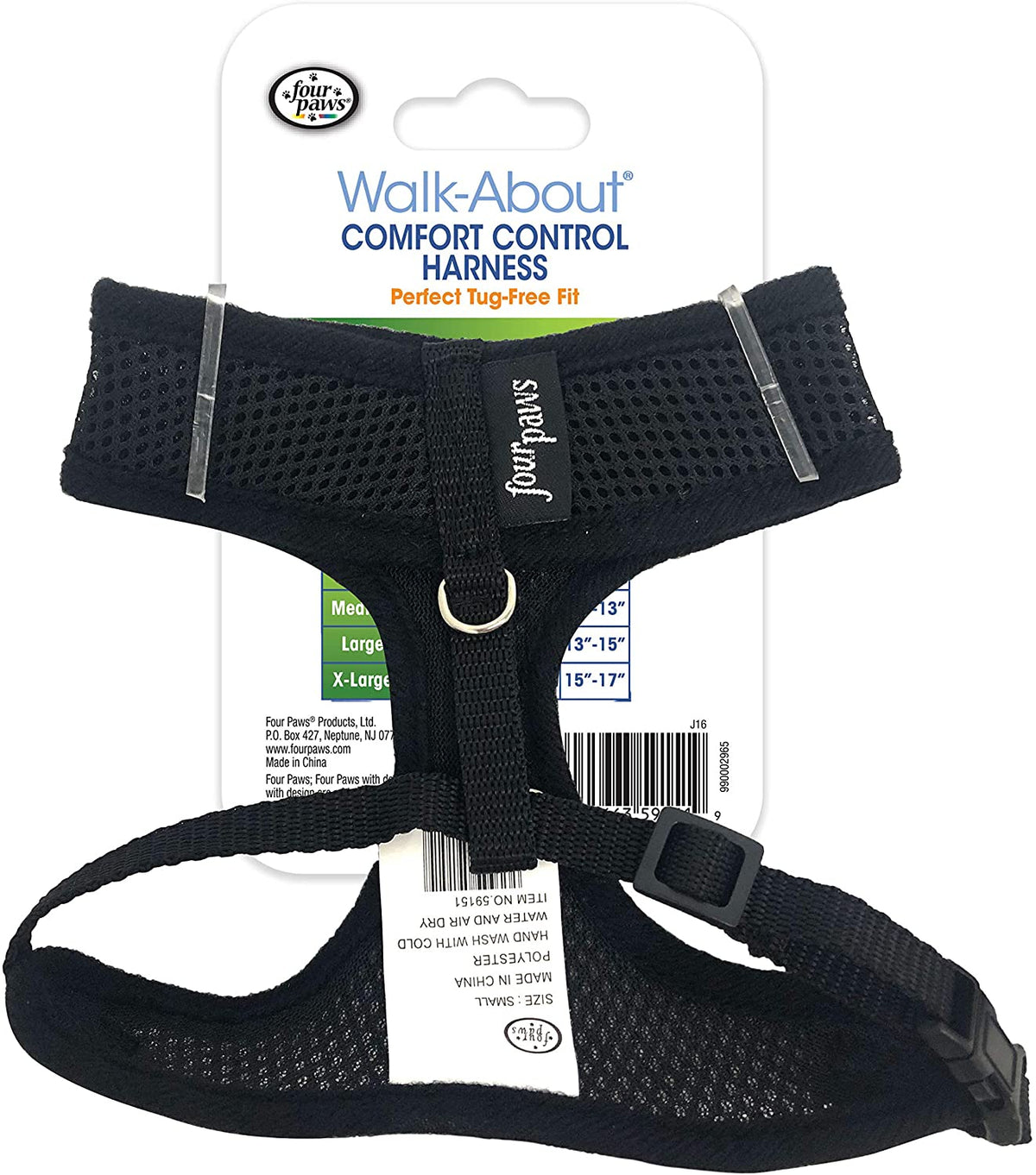 The Four Paws Comfort Control Harness Is Comfortable For Dogs To Wear With Complete Control For The Owner. The Four Paws Comfort Control Harness Is Durable Made Of Long Lasting Neoprene Mesh Material That Is Very Light Weight And Breathable For Comfort.Comfortable For Dogs With Complete Control For Youlong-Lasting Durable Neoprene Meshadjustable Nylon Straps For A Secure Fitthe Four Paws Comfort Control Harness Features Adjustable Nylon Straps For A Perfect Fit.Sizing: Measure Dogs Girth Behind Front Legs And Add 2'' For Correct Size.X-Small: Dogs 3-4 Lbs (11''-13'' Chest 7''-8'' Neck)Small: Dogs 5-7 Lbs (14''-16'' Chest 8''-10'' Neck)Medium: Dogs 7-10 Lbs (16''-19'' Chest 10''-13'' Neck)Large: Dogs 11-18 Lbs (19''-23'' Chest 13''-15'' Neck)X-Large: Dogs 20-29 Lbs (20''-29'' Chest 15''-17'' Neck)