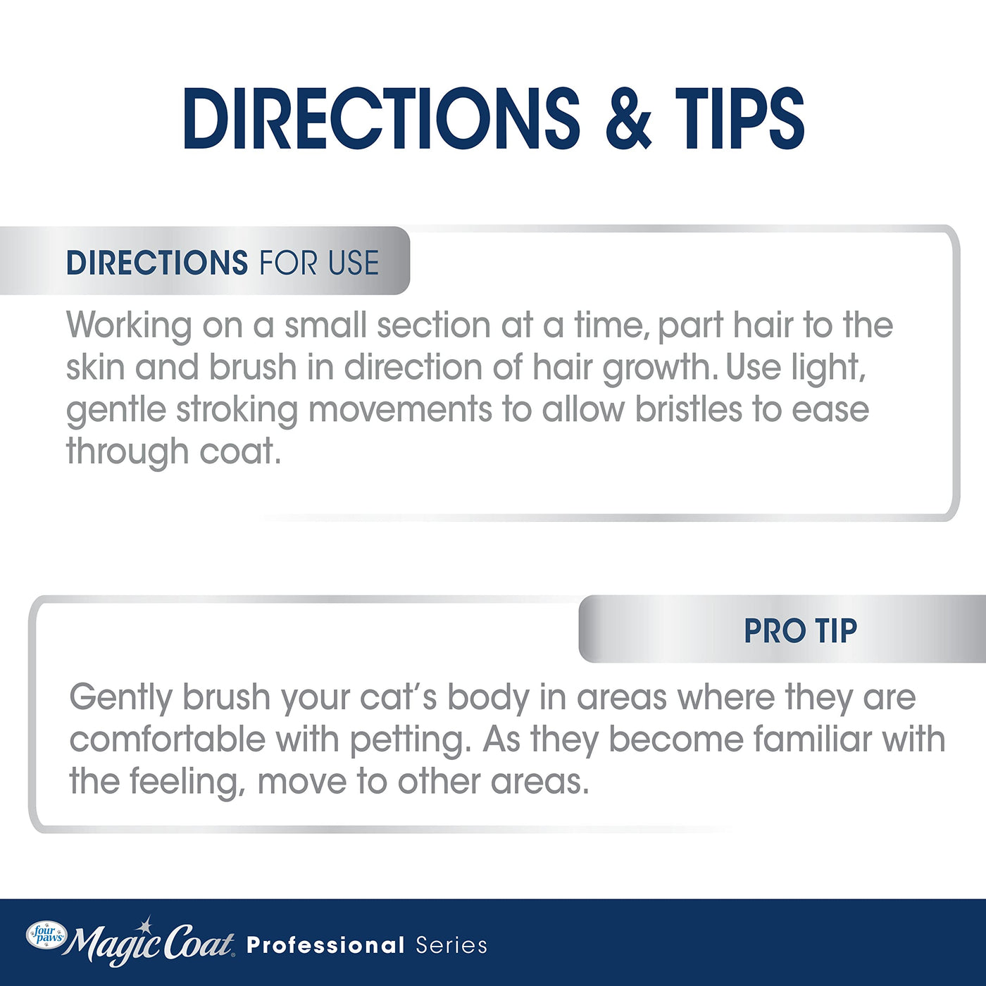 Q: What makes the Four Paws Magic Coat Grooming Essentials suitable for cats?A: The Four Paws Magic Coat Grooming Essentials are specifically designed for cats and kittens, featuring thinner bristles that are gentle on delicate skin. The ergonomic handle provides comfort and control, making it easier for pet owners to groom their cats effectively.
