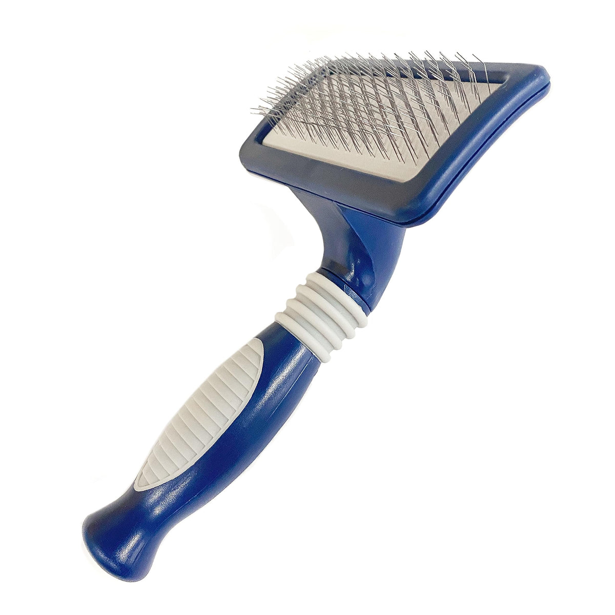 Q: How does the Comfort-Grip Cat Slicker Brush help reduce shedding?A: The Comfort-Grip Cat Slicker Brush effectively captures and removes loose hair, reducing shedding while also stimulating the coat's natural oils. This results in a healthier, shinier coat for your cat.