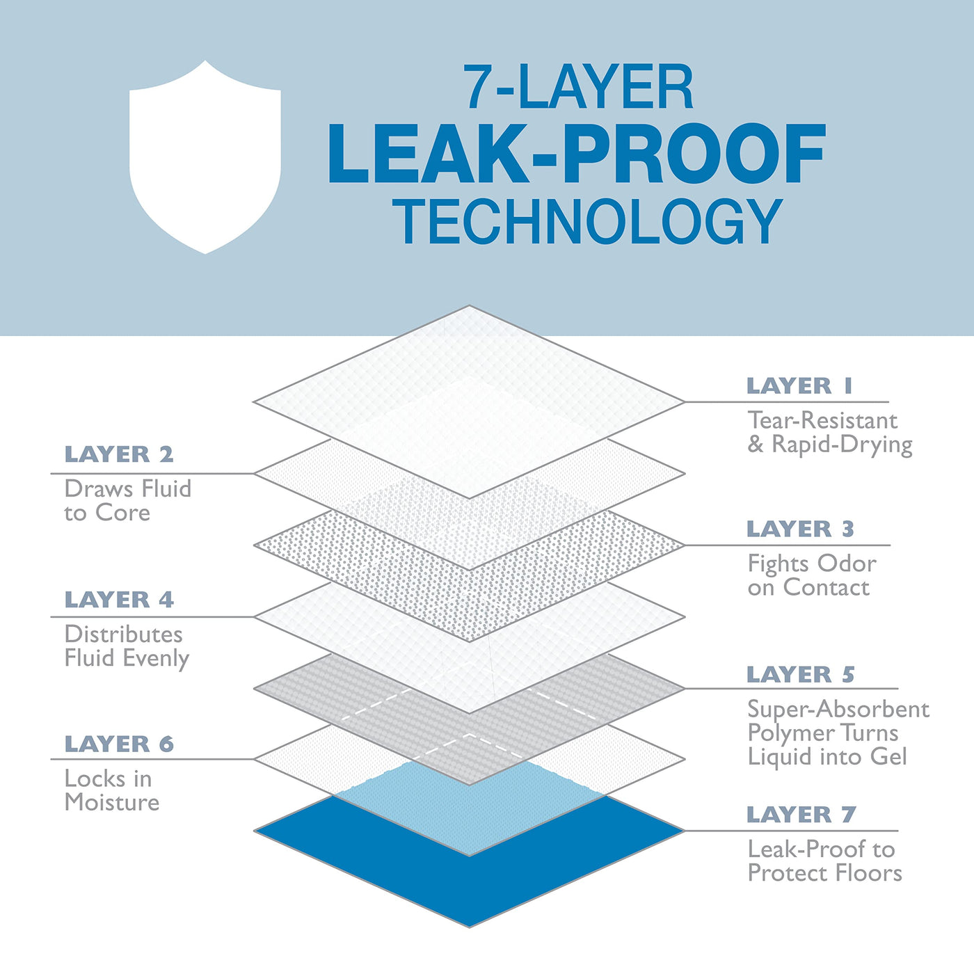 Q: How do the leak-proof features work in these dog training pads?A: The pads utilize an exclusive Floor Armor Leak-Proof System that draws fluid to the core and locks in moisture, ensuring that your floors remain dry and protected for up to 24 hours.