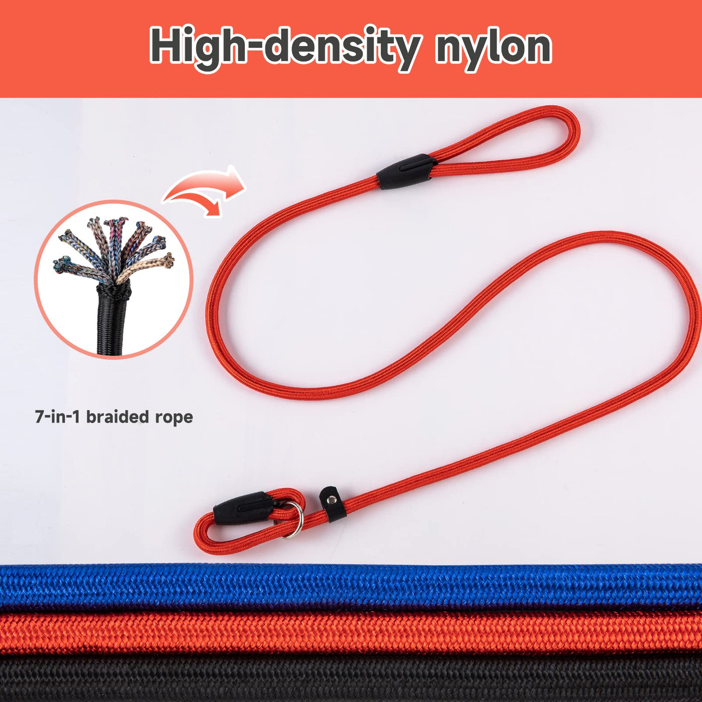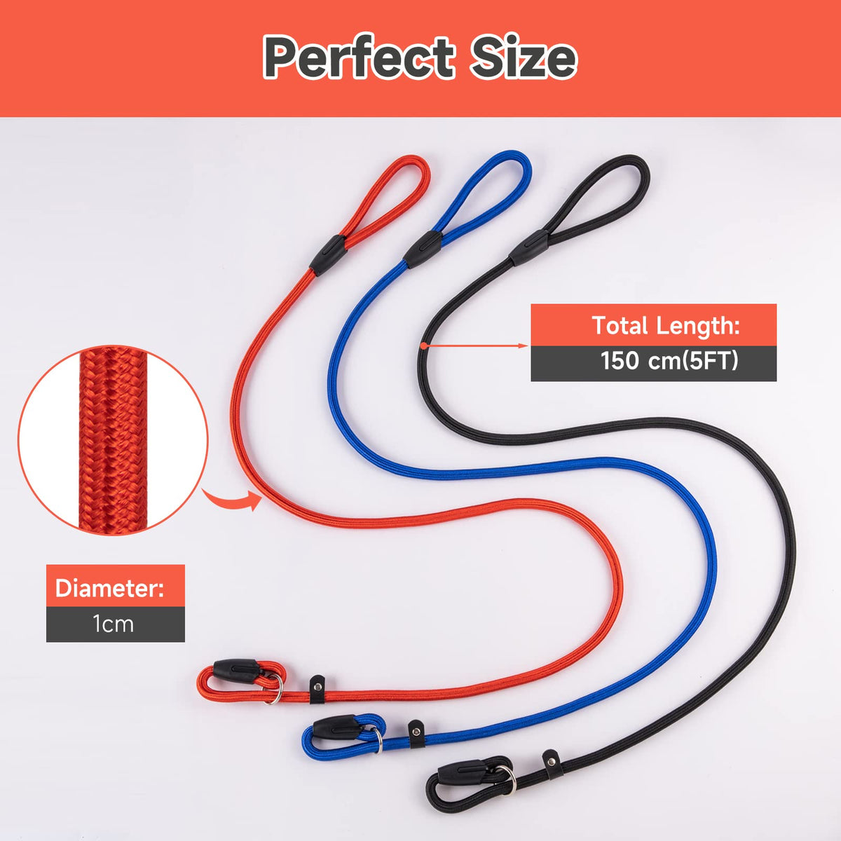 Fovrlzse 3-Pack Heavy-Duty Nylon Adjustable Slip Leads For Dogs - Red, Black, Blue - Adjustable, Durable & Night-Safe