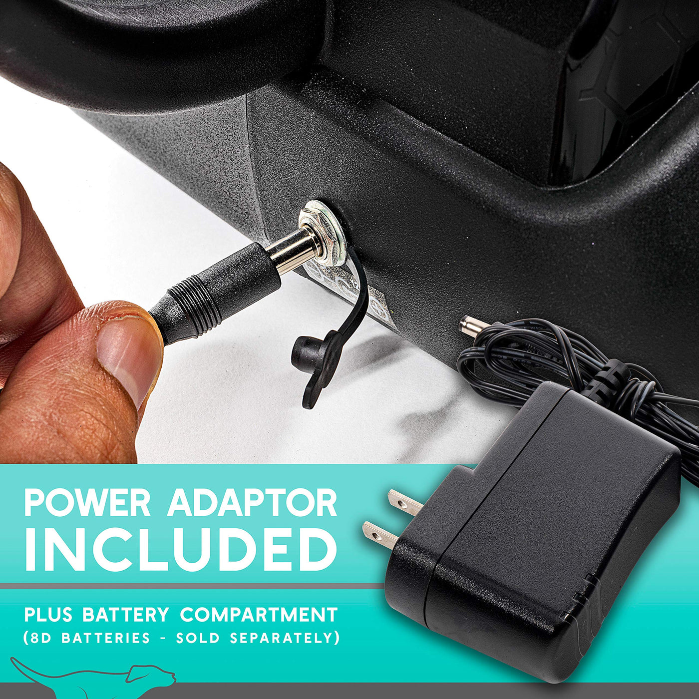 Q: Does the launcher require batteries, and how long can it be used on battery power?A: The launcher comes with a power adapter for plug-in use, but it can also run on 8 'D' batteries (not included). Battery life will vary based on usage, but using the power adapter will allow for continuous play without the need for replacement batteries.