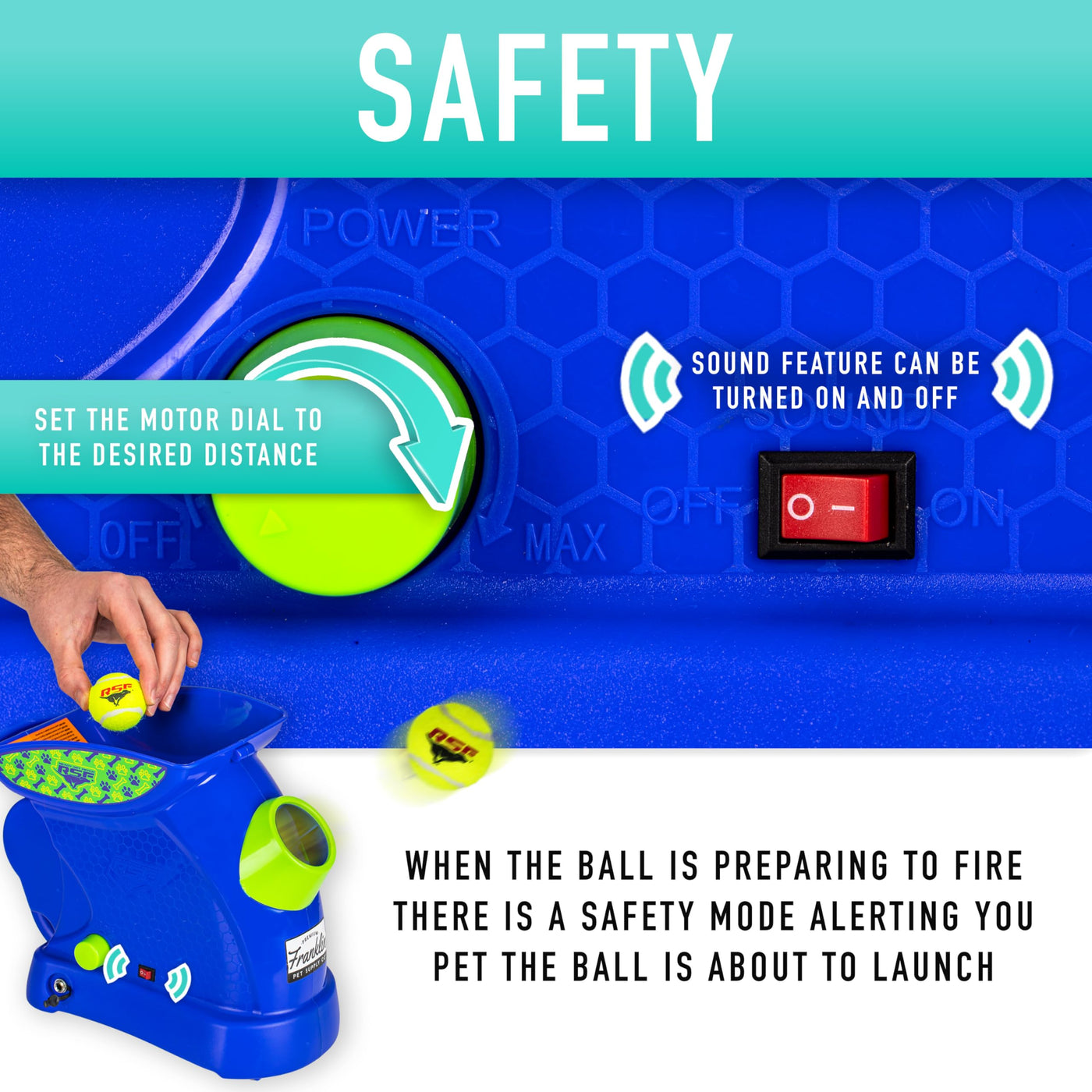The Franklin Pet Supply-Ready Set Fetch Mini Automatic Tennis Ball Launcher is the ultimate interactive pet toy! Your small dog will love the distance this unit will launch the ball, and your arm will love the automatic electronic functioning. This interactive dog toy keeps dogs coming back again and again. Once your dog places the 1.7 '' mini sized tennis ball into the top of the feeder, the mini tennis ball feeds through the chamber and an optional warning sound will sound prior to launch for safety. The launcher warning buzzer can be turned on or off on command. This automatic launcher shoots the mini tennis balls up to 40' feet for long range fetch that dogs are sure to love. The launcher includes a power adapter that can plug into any outlet, plus it can also run on (4) ''D'' batteries (not included) so you can take the game on the go to the backyard or park. This launcher comes with (1) RSF mini tennis ball included so you can stary play time right out of the box. So if you're ready to give you dog the gift of endless fetch, grab your Franklin Pet Supply-Ready Set Fetch Mini Automatic Tennis Ball Launcher and start the games today!