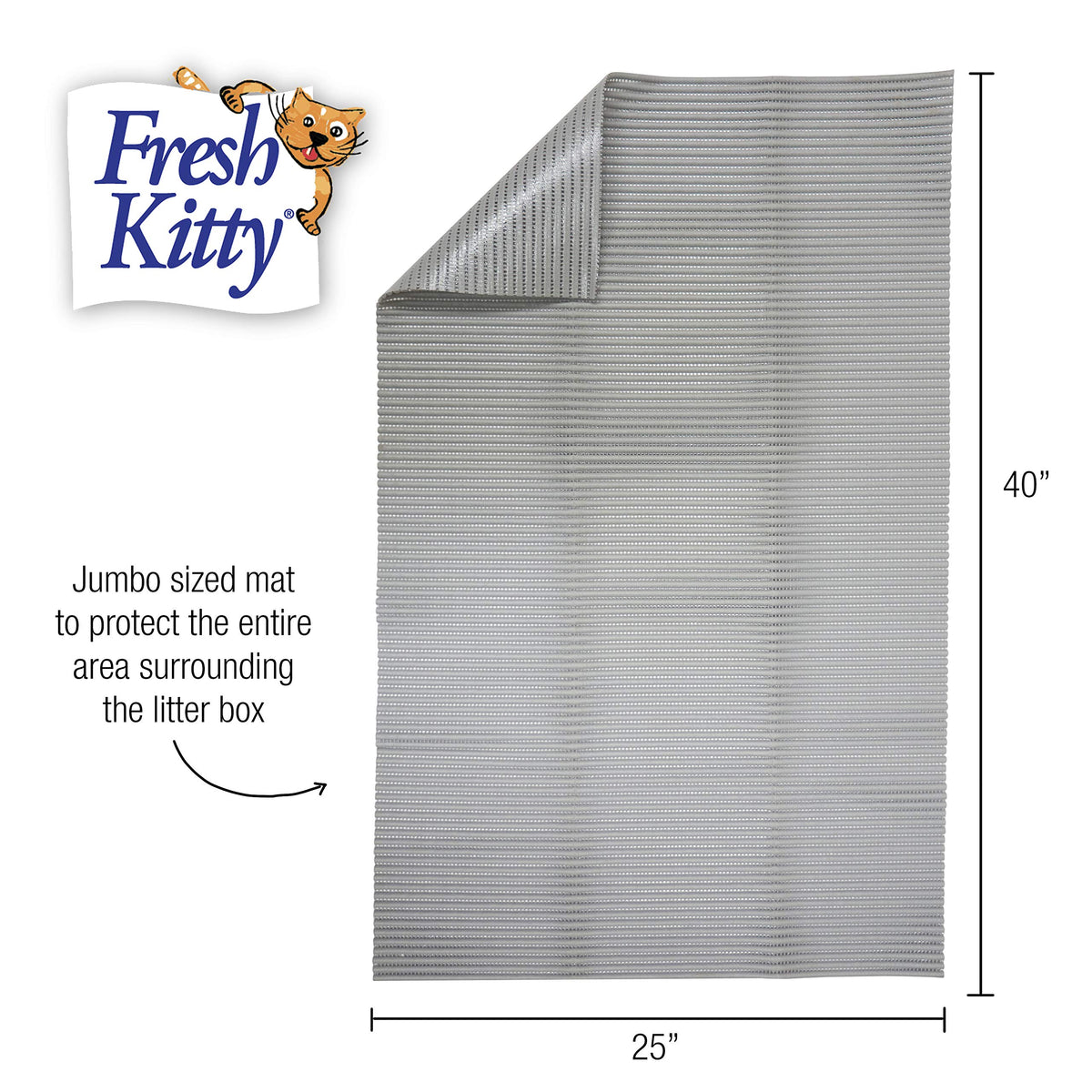 Keep your house clean from your cats with fresh kitty Jumbo foam litter mat The mat is easy to use and maintain Porous indents collect litter preventing scattered debris and dust from being tracked around A Jumbo size protects a large area that surround the litter box The grey color is fashionable and can match any decor Item measures 40 by 25