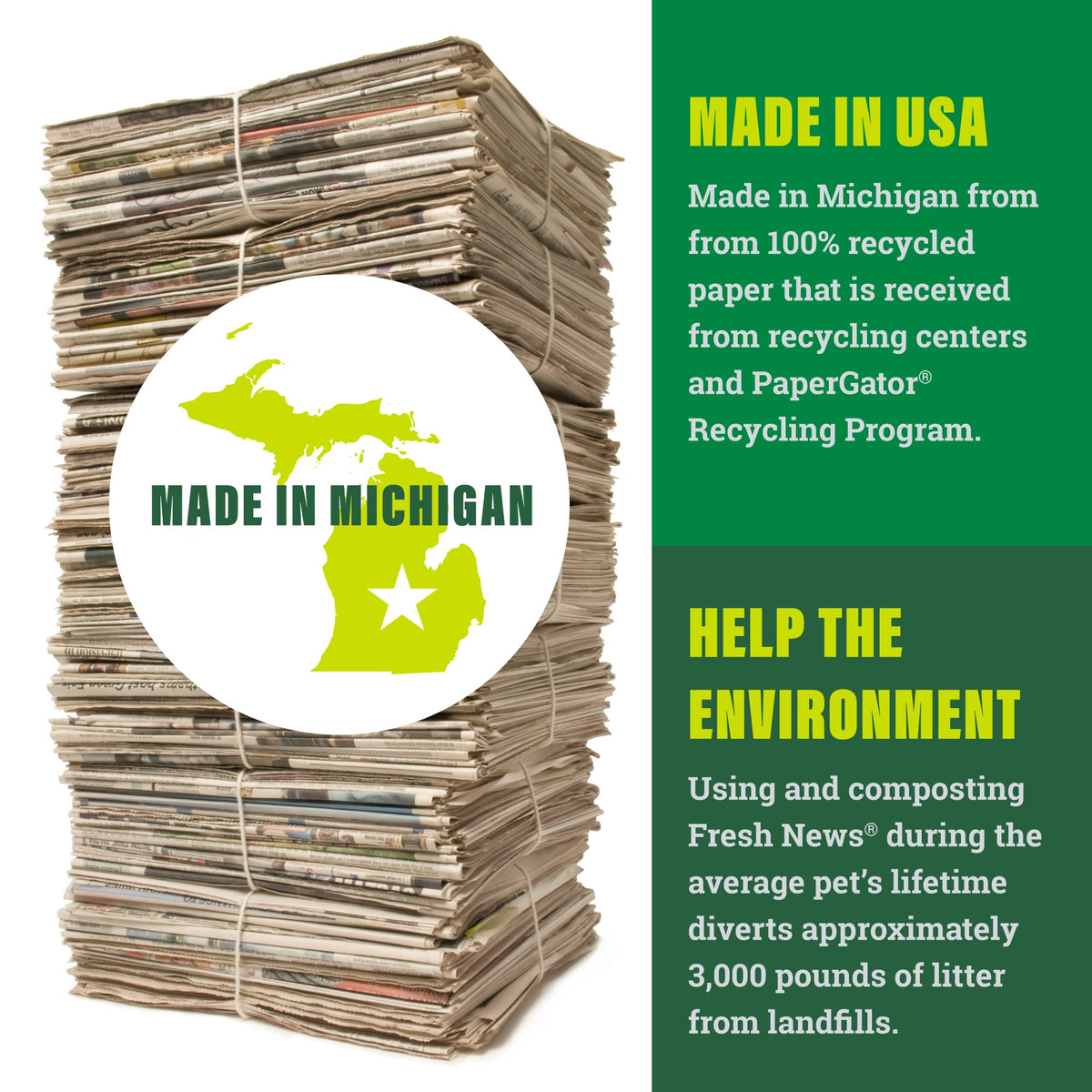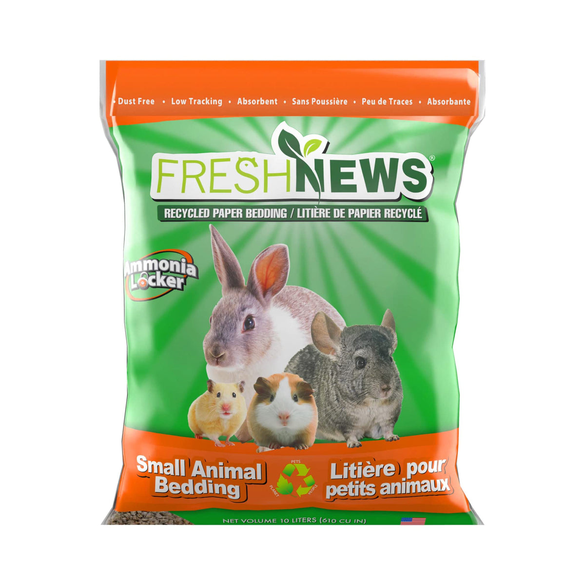 Small Animal Bedding: Keep your home clean and help the environment with Fresh News Recycled Paper Bedding The moisture locking particles and odor control help neutralize habitat and litter pan odors Odor control: Keep your pets habitat fresh and smell free Our long lasting recycled paper bedding quickly eliminates odors on contact with the help of Ammonia Locker to keep your pets habitat fresh 100% Recycled paper: Made with 100% post consumer paper from recycling centers it is safe for all animals This bedding is also biodegradable when composted so you can continue to help divert space from landfills Non Allergenic: Spend more time with your pet without worrying about cleaning its cage Fresh News products are over 99% dust free and 100% non allergenic giving you a cleaner litter box and home Healthy Environment: Fresh News promises to provide a non toxic and hygienic space for you and your pet Shop our beddings pellets and litters for cats rabbits hamsters gerbils chinchillas and other small animals