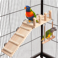 FrgKbTm Bird Perches Platform Swing with Climbing Ladder, Parakeet Cage Accessories Wooden Playing Gyms Exercise Sturdy for Smal