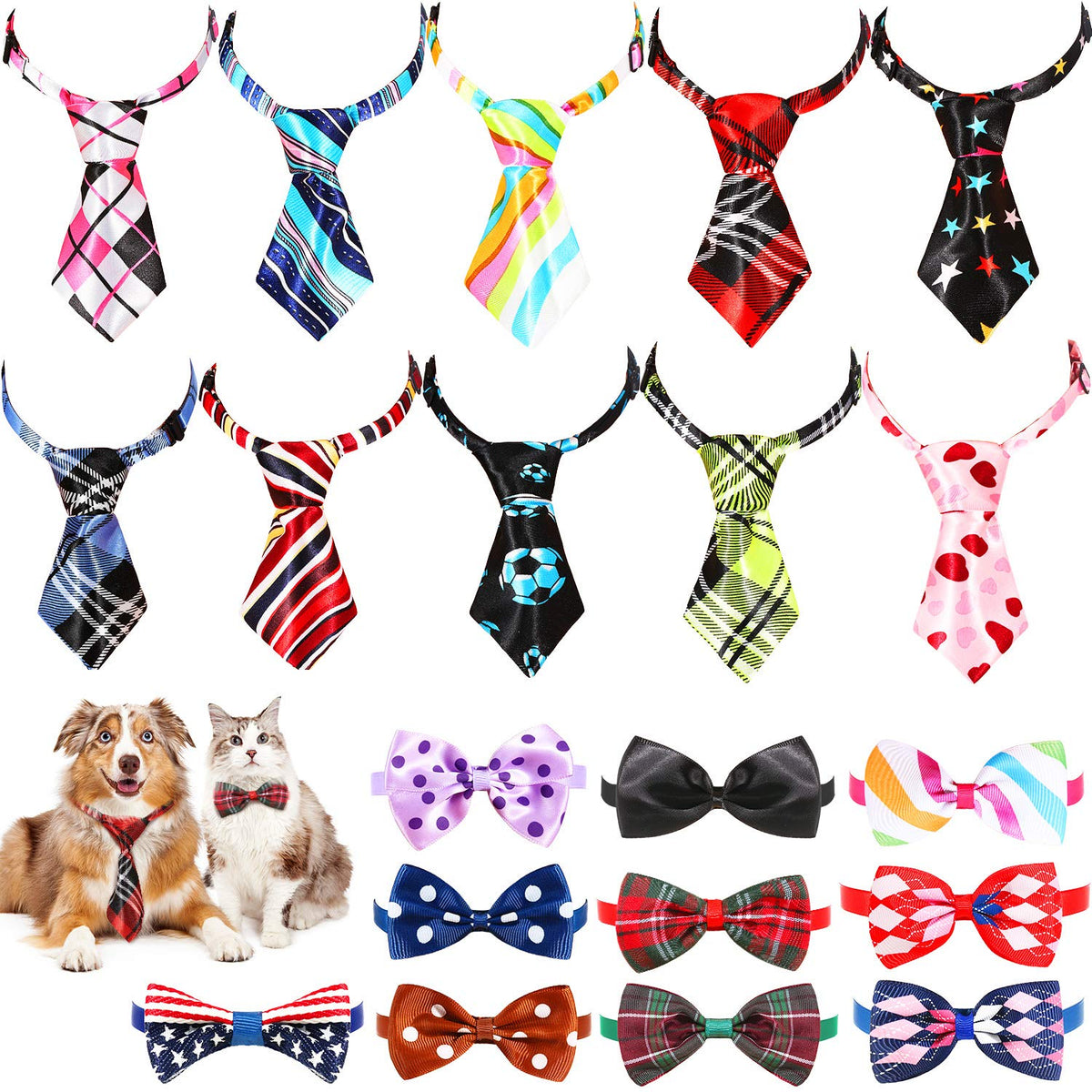 Frienda 20 Pieces Dog Ties Assorted Small Pet Bow Ties Festival Neckties with Adjustable Collar for Dog Cat Grooming Accessories