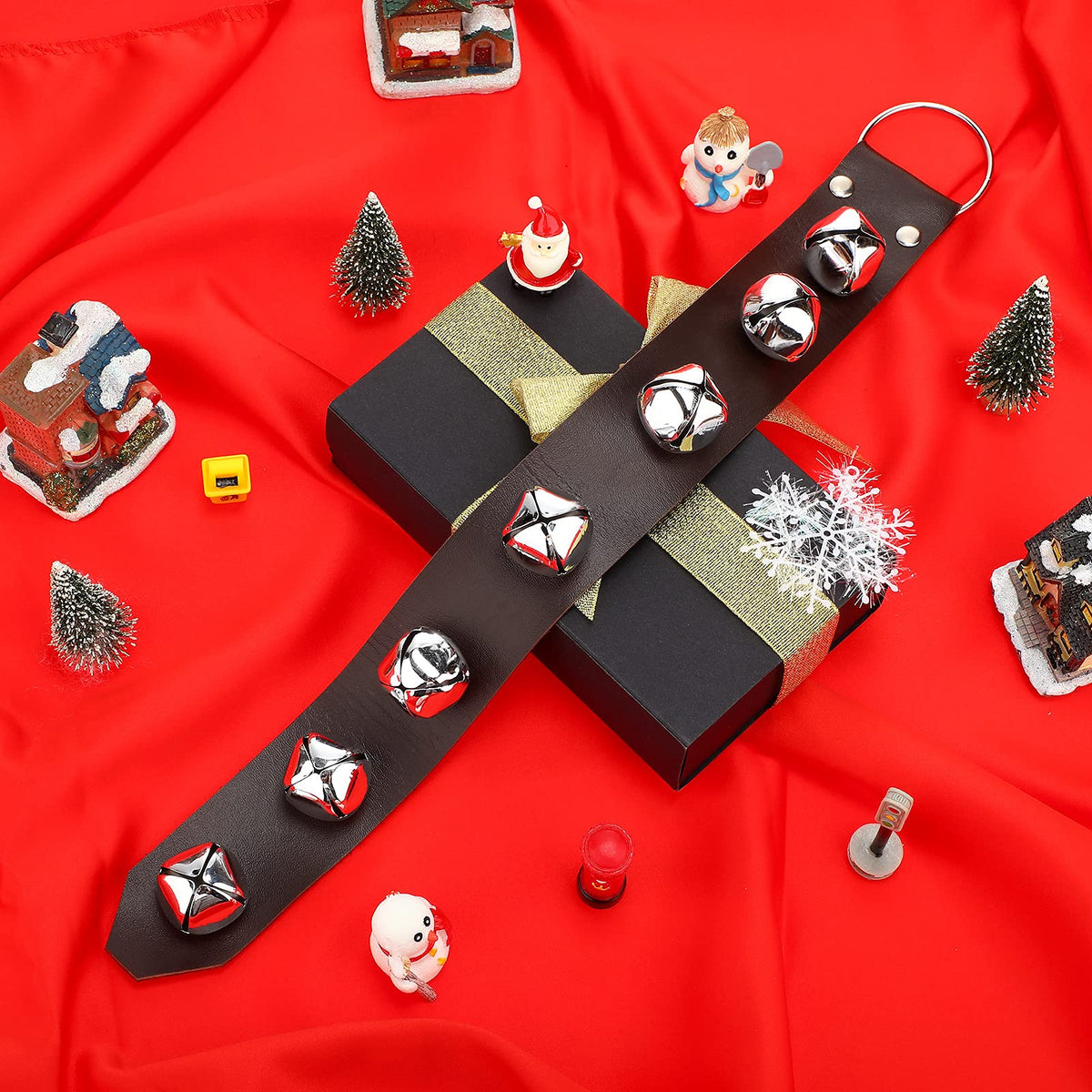 Hanging jingle bells 7-bell dog doorbells for door knob go outside dog bells for christmas decor and holiday decorations (18.7 x 1.8 x 1 inches) Convenient to use: The hanging bells ornament is easy to put on and take off with a ring on the top, which make it easy and convenient to use, can be applied with confidence. Sturdy and durable: The sturdy material adopted makes go outside dog bells durable to use, not easy to break or tear, can be applied for a long time, also looking great hanging on your door. Specification: Material: as the picture shows Color: as the picture shows Size: approx. 18.7 x 1.8 x 1 inches Package includes: 2 x Hanging jingle bells Note: There might be small size error due to manual measurement. Product color may slightly vary due to photographic lighting sources or your monitor settings, please in kind prevail. Make sure the size before you buy it. The rings of the leather bells are too small to hang from the large doorknobs.