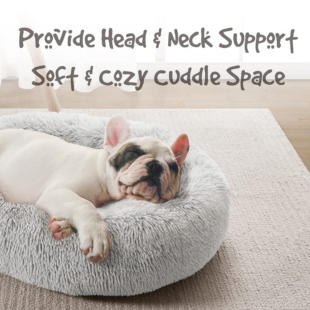 Friends Forever Donut Dog Bed Faux Fur Fluffy Calming Sofa For Large Dogs, Soft & Plush Anti Anxiety Pet Couch For Dogs, Machine