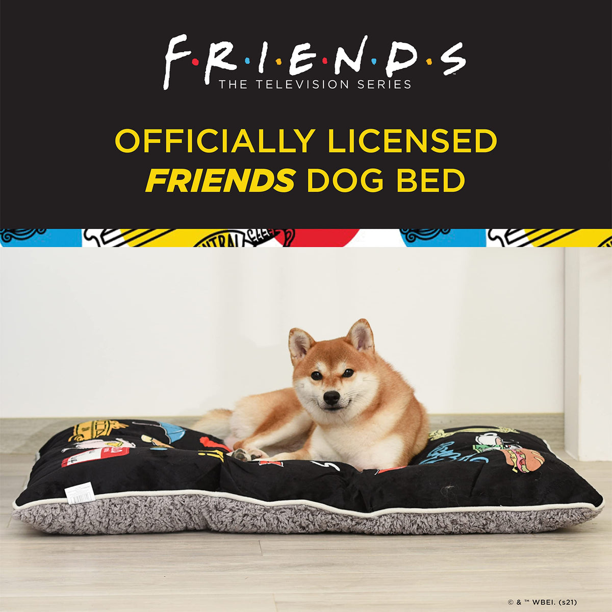 Be There For Your Furry Friend With The Friends Tv Show Iconic Graphics Napper Dog Bed. This Adorable Black Dog Bed Is The Perfect Place For Your Pet To Take Well Deserved Naps. Officially Licensed By Warner Bros., This Dog Bed Measures 36' X 27' X 3'. Napper Dog Beds From Friends Are Soft, Comfortable, Cute, And Cuddly. Great For Daytime Naps Or Nighttime Sleeps, This Dog Bed Does It All. Spot Clean As Needed. This Is A Soft, Cute, And Comfortable Dog Bed That Your Dog Will Enjoy Sleeping In. Depending On The Size Of Your Dog, Your Dog Could Need An Xl Dog Bed, A Large Dog Bed, A Medium Dog Bed, Or A Small Dog Bed. This Is Not An Elevated Dog Bed, But It Should Be Good For Most Dogs. It Could Be The Perfect Dog Crate Bed To Add To Your Dog'S Crate. This Dog Bed May Or May Not Be A Dog Crate Bed Depending On The Size Of Your Dog'S Crate. Napper Beds And Raised Dog Beds Can Be Perfect For Helping Your Pet Feel Secure Day Or Night. A Calming Dog Bed Like This One Is Washable As Well By Spot Cleaning. Friends Tv Show Merchandise Are Perfect For Celebrating The Recent Friends Reunion. Pop In Friends Season 1-10 And Watch The Show Alongside Your Pet As They Cuddle Into This Dog Bed. Also Be Sure To Check Out Other Pet Accessories Like Friends Tv Show Gifts In The Form Of Dog Collars, Dog Friends Tv Shirts, Dog T Shirts, Friends Tv Show Decor, Plush Dog Toys, Squeaky Dog Toys, Friends Tv Show Dog Bowls, And Friends Tv Show Merchandise Dog Treat Jars. Be There For Your Furry Friend And Enjoy The Friends Tv Show All Over Again.
