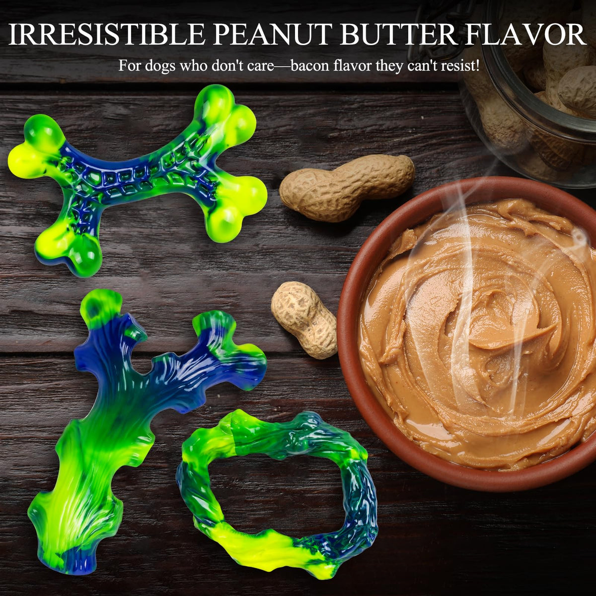 Frienhund Indestructible Nylon Dog Chew Toys - 3-Pack, Durable Bone-Shaped Toys for Large Aggressive Chewers, Green