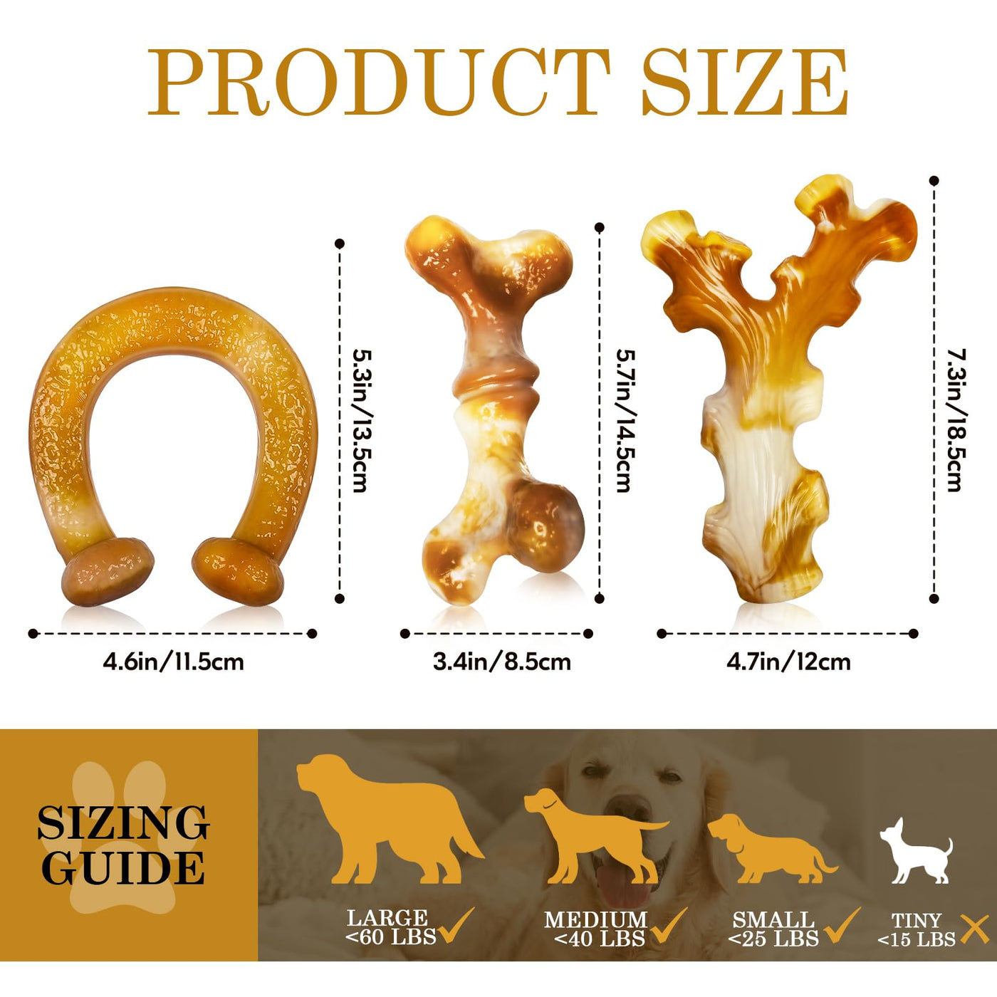 Frienhund Dog Toys For Aggressive Chewers 3 Pack, Dog Chew Toys For Large Dogs, Indestructible Dog Toy For Aggressive Chewers, Chew Toys For Aggressive Chewers