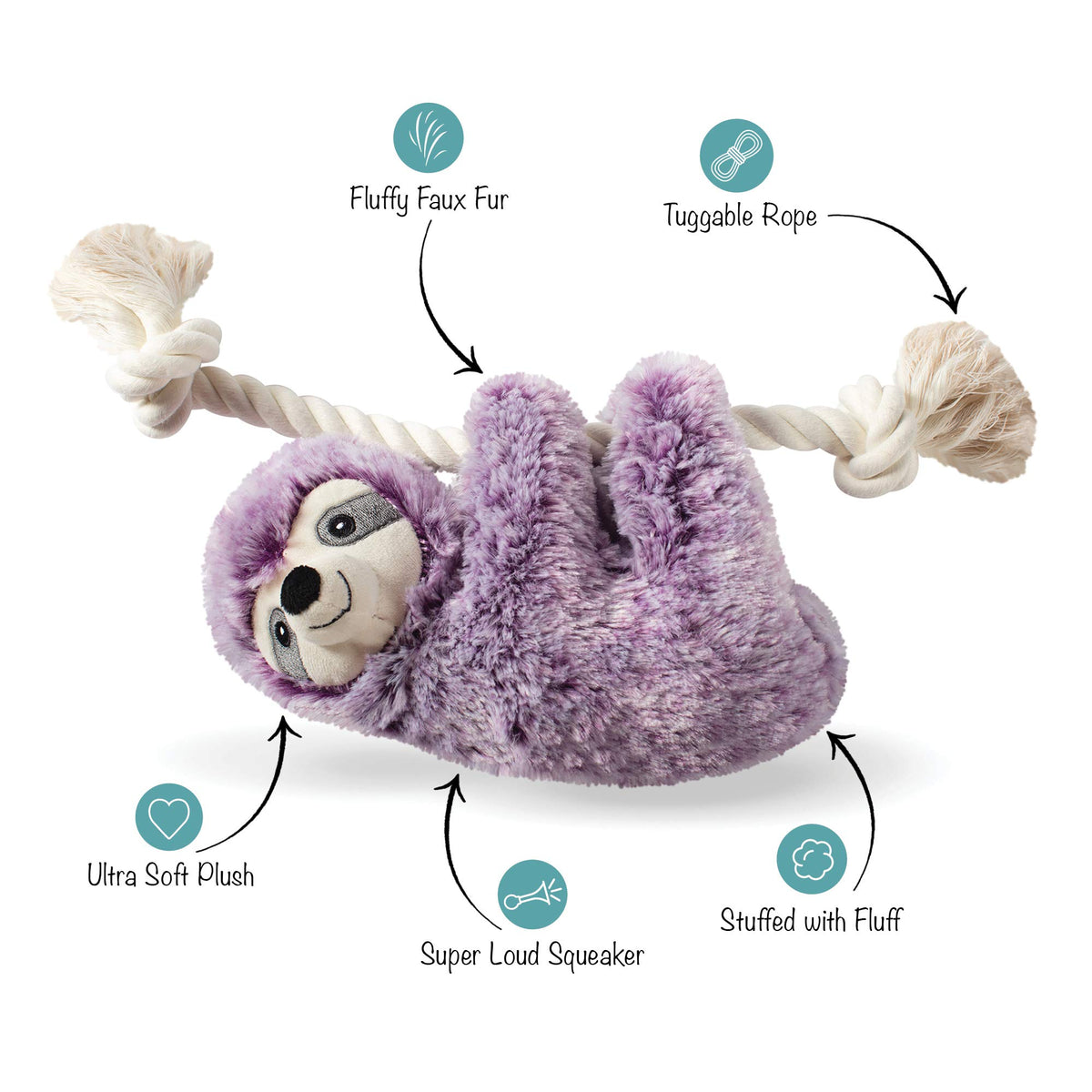 Fringe Studio Dog Toy, Violet Sloth On A Rope-Plsh Pet Toy (289393)