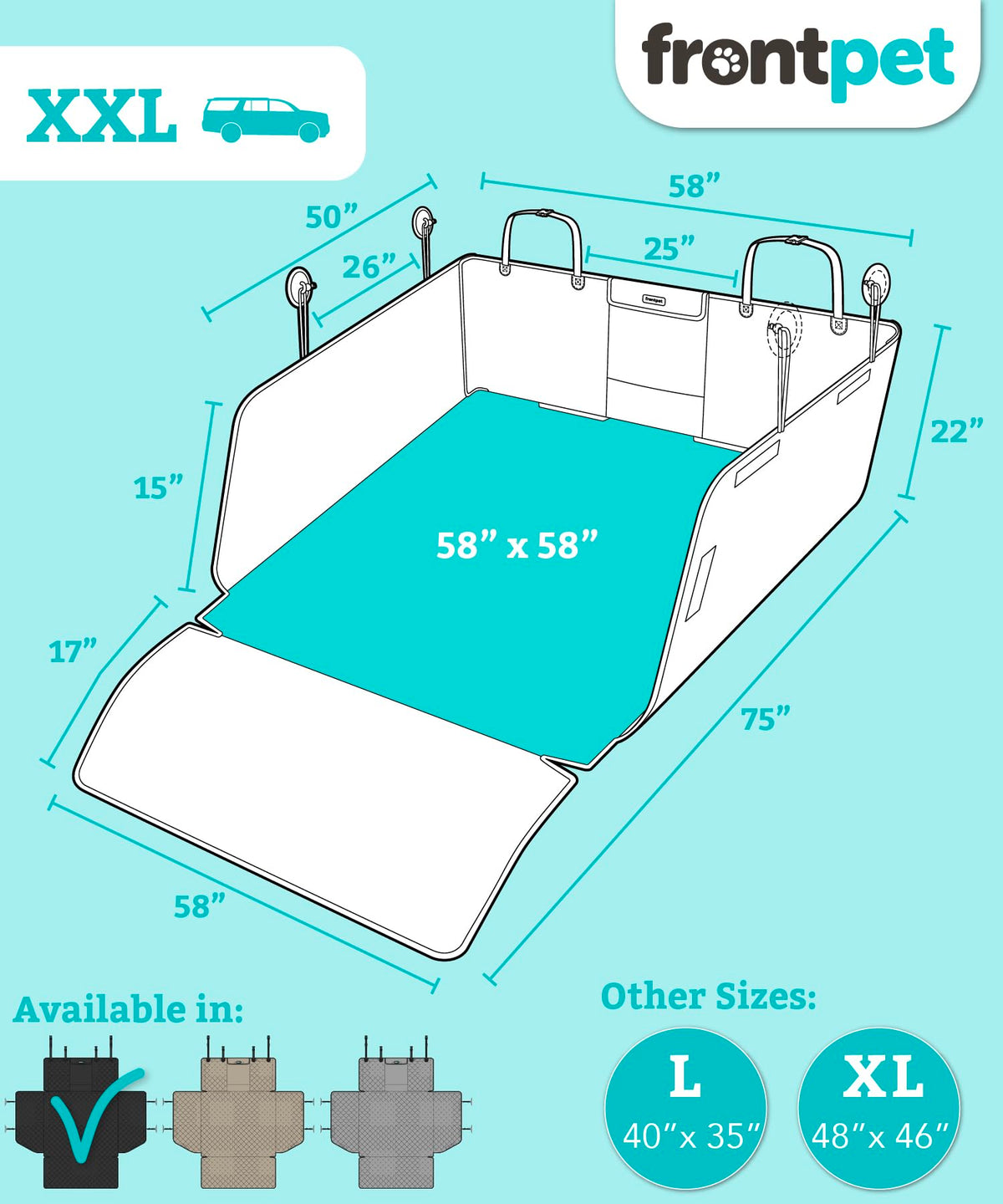 Frontpet Suv Cargo Liner For Dogs - Water-Resistant Pet Trunk Cargo Cover Mat For Suvs And Sedans With Bumper Flap Protector, Trunk Cover, Non-Slip Liner, (58' X 58') Upgraded 2025