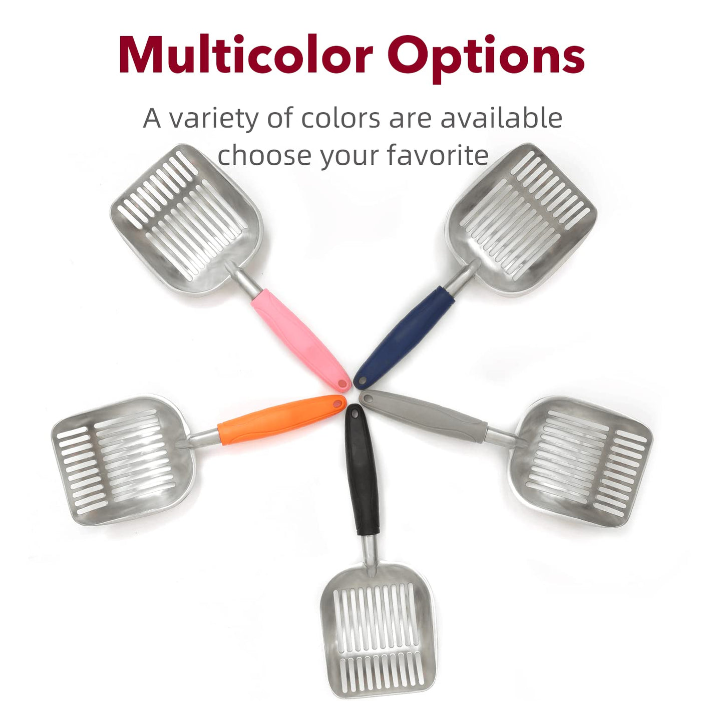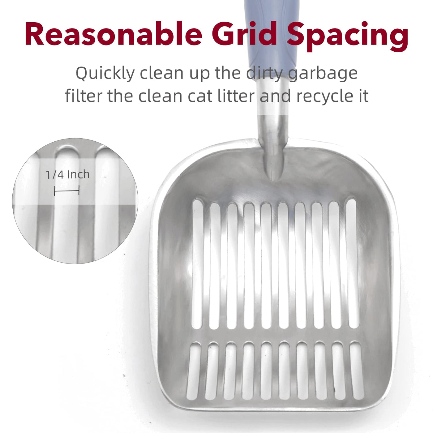 color Size:Blue handle Length 14 x Width 55 x Deep 2 Inch Design: Pure aluminum metal spoon Solid plastic handle Oversized grip me comfortably Strong and durable Efficient filtration of waste Easy to clean: The lightweight aluminum metal will not rust and can be rinsed off by simply placing it under a faucet Will not Bend: Solid aluminum Solid handle can be repeatedly used for heavy-Duty litter filtration More efficient cleaning of litter waste Will not bend and break like plastic shovel handle easily cost-Effective: The product is oversized Real materials More affordable than the small size of the market metal shovel Plastic shovel We strive to give cat owners the most cost-effective Most practical products