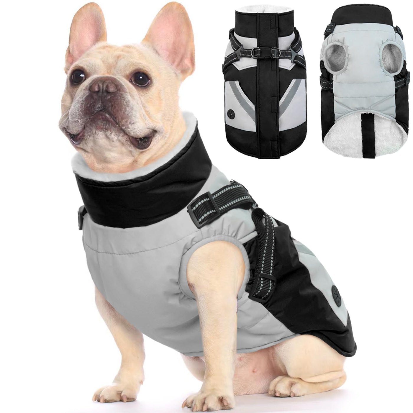 Fuamey Dog Jacket - Waterproof & Reflective, Built-In Harness, Winter Coat With Zipper, Small Dog Size, Black With Poop Bag Pock