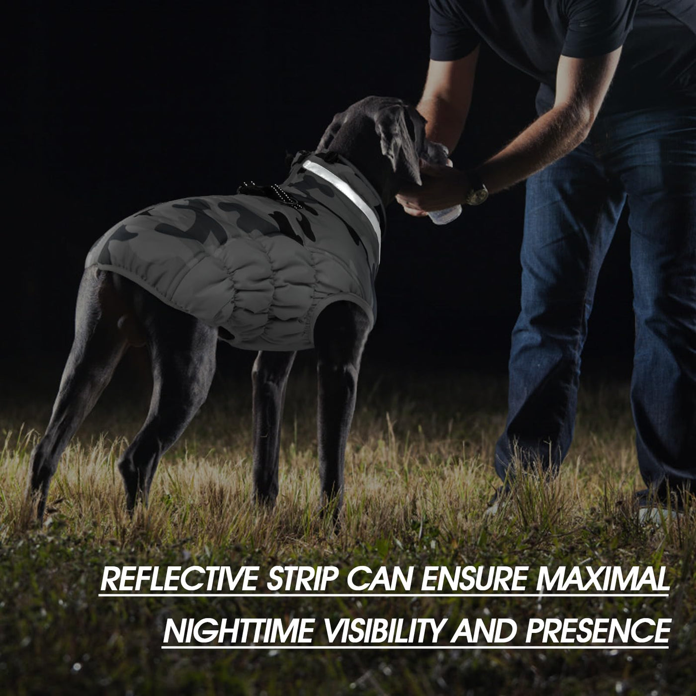 Fuamy Dog Winter Jacket, Padded Dog Vest With Built-In Harness, Water Resistant Coat - Grey Camo Xl