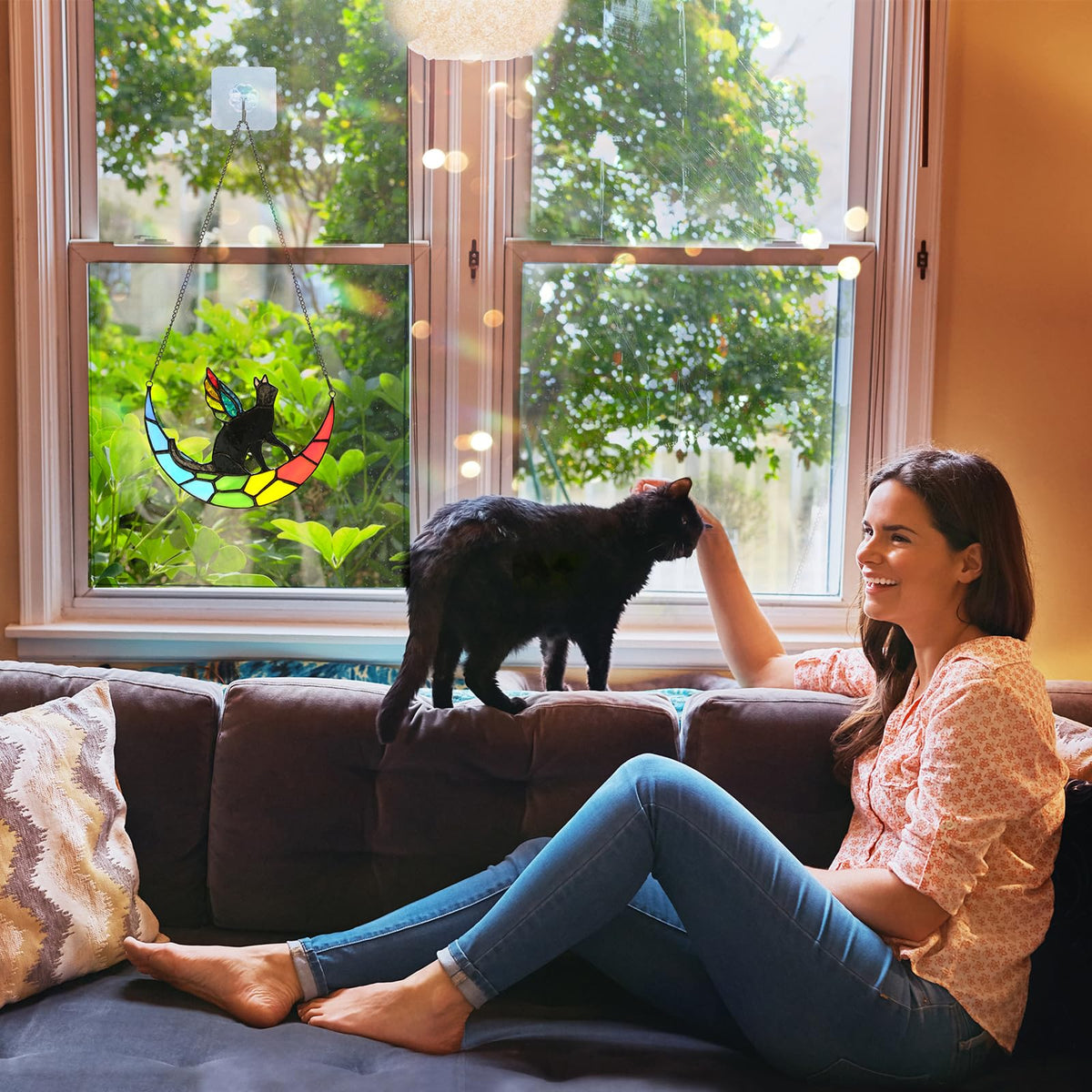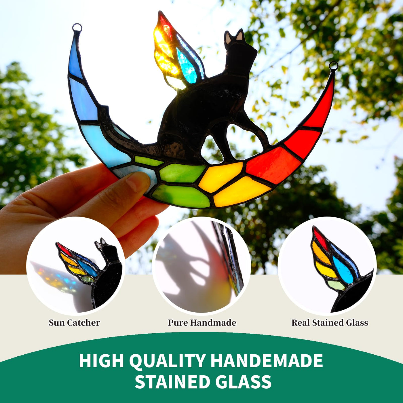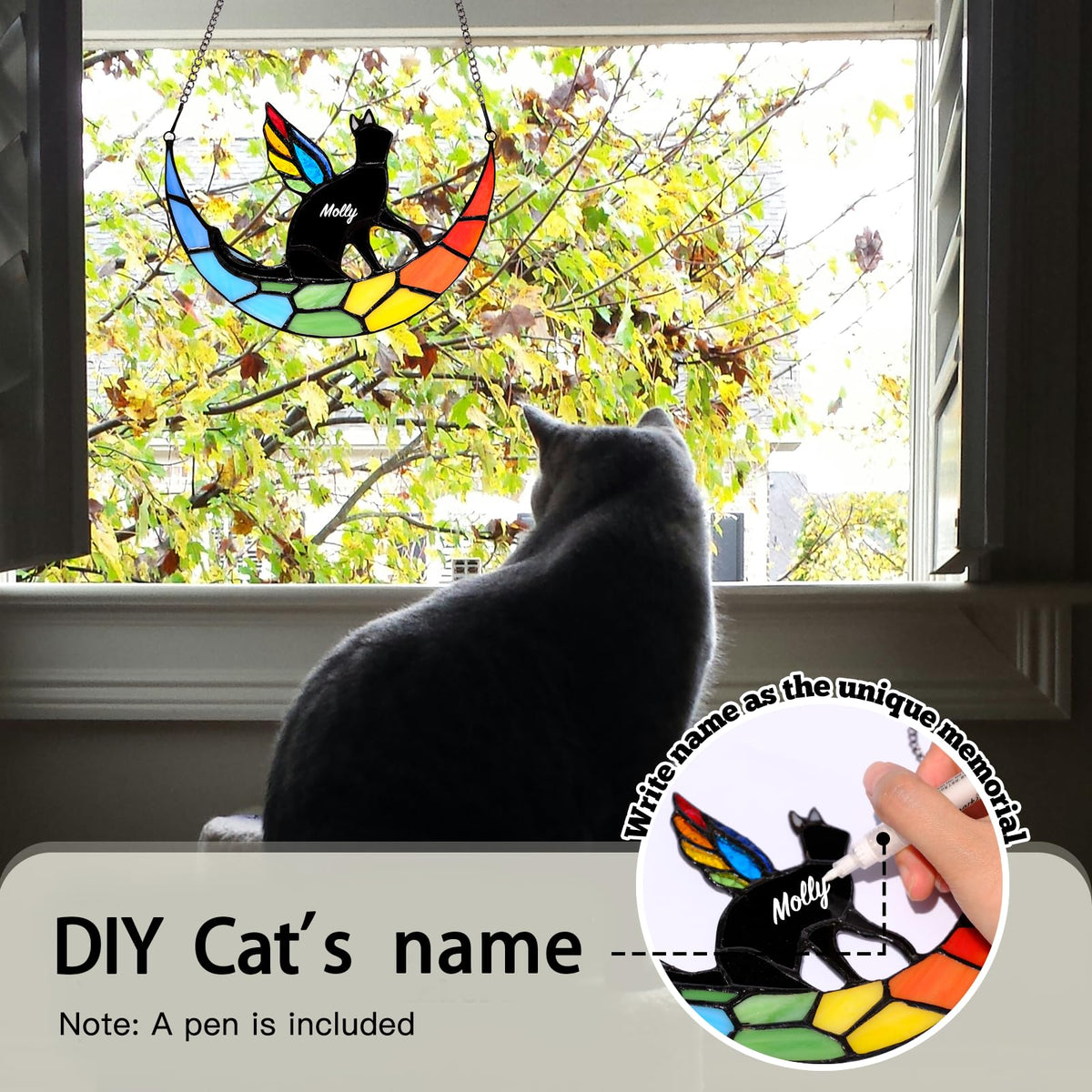 Fufyukey Angel Black Cat Memorial For Loss Of A Cat - Iridescent Angel Wing Suncatchers For Stained Glass Window Hangings, Rainb
