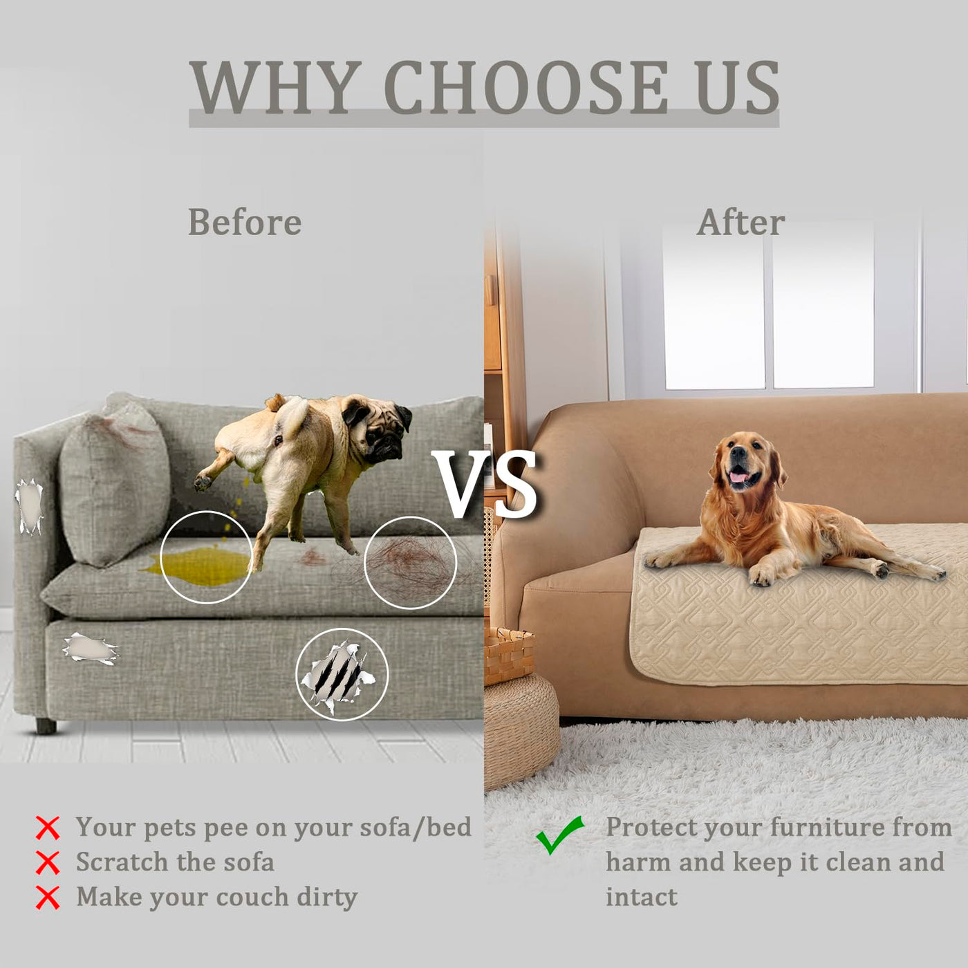 Fuguitex Waterproof Dog Bed Cover Dog Blanket For Pet Furniture Bed Couch Sofa Reversible Linen Texture(30''*70'',Cream+ Wheat)