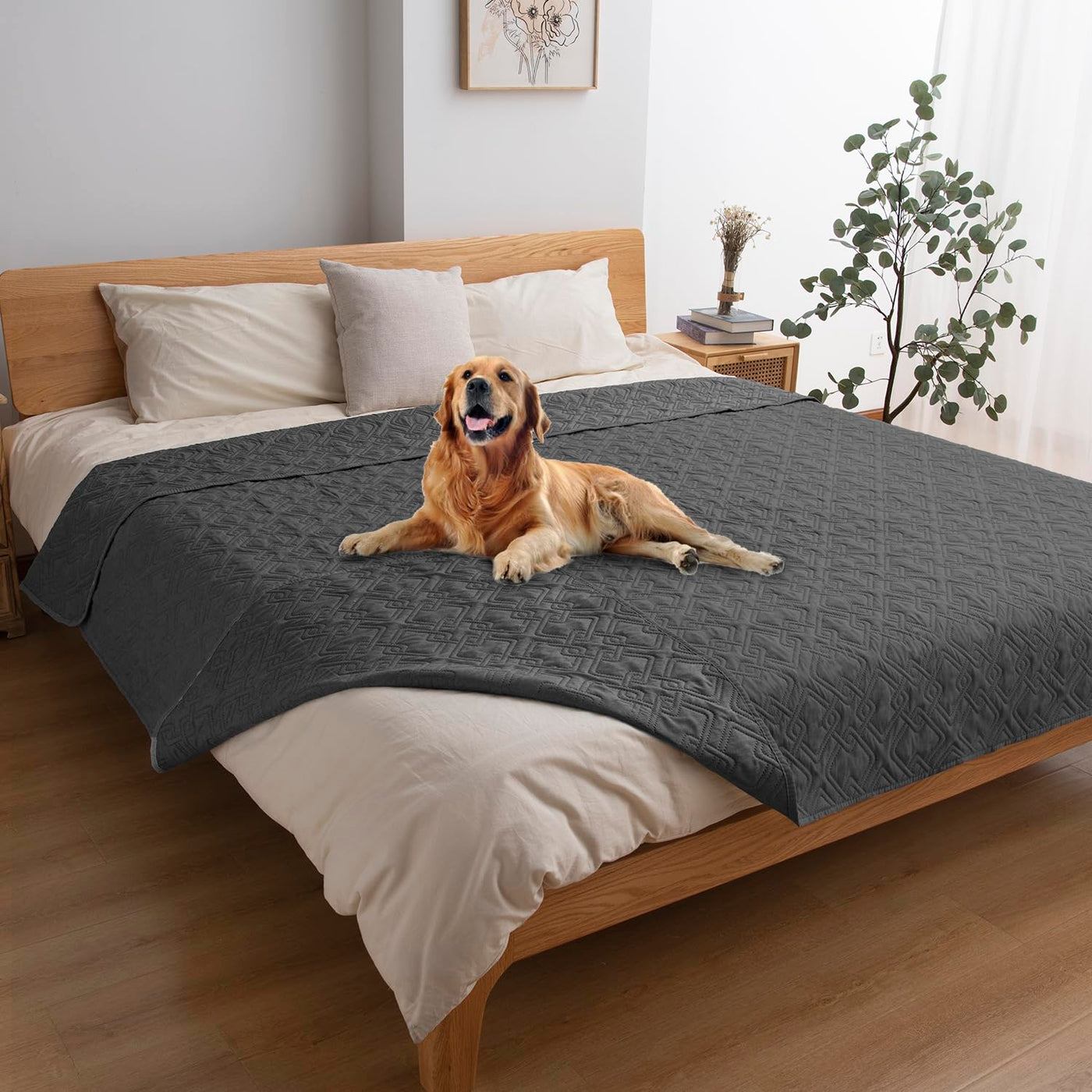 Fuguitex Waterproof Dog Bed Cover Dog Blanket For Pet Furniture Bed Couch Sofa Reversible Linen Texture(82'*82',Dark Grey+ Dar