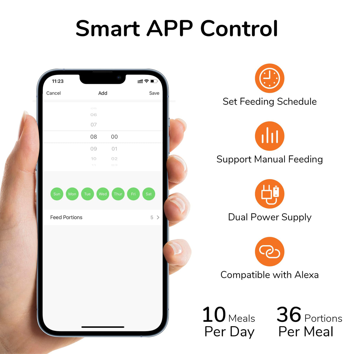 FUKUMARU Automatic Cat Feeder, 4L Dog Feeders with Double Bowls, Support DIY Meals and Timed Control WiFi Cat sFood Dispenser, S
