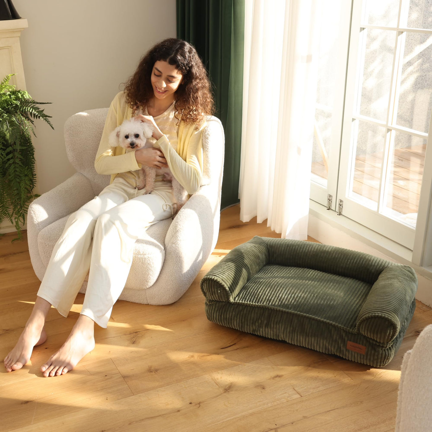 Fukumaru Cat Couch Bed, Corduroy Cozy Cat Bed For Indoor Cats With Removable Washable Cover, Supportive Anti-Slip Dog Beds Sofa