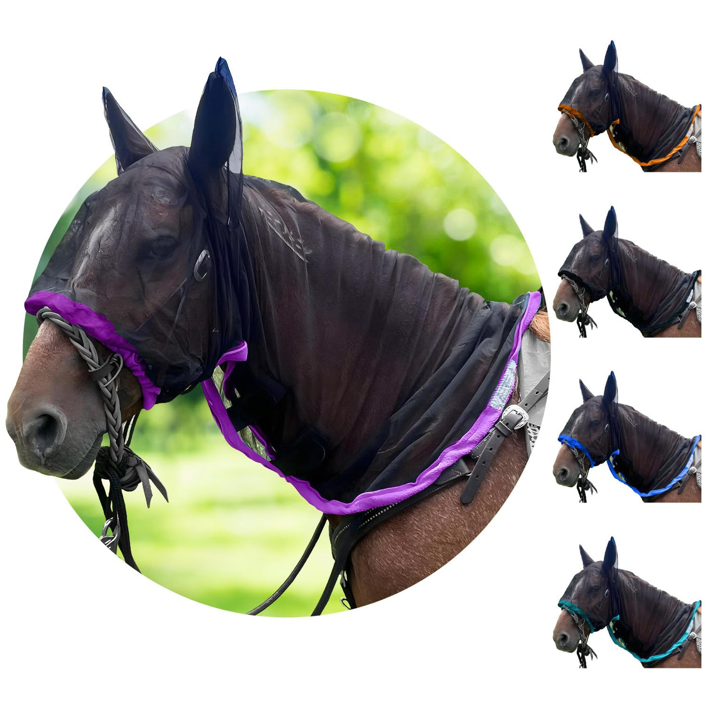Full Horse Fly Mask with Ears - Purple Full Hoodie Warmblood Nose-to-Wither Fly Masks for Horses with Ears Horse Mask with Ear P