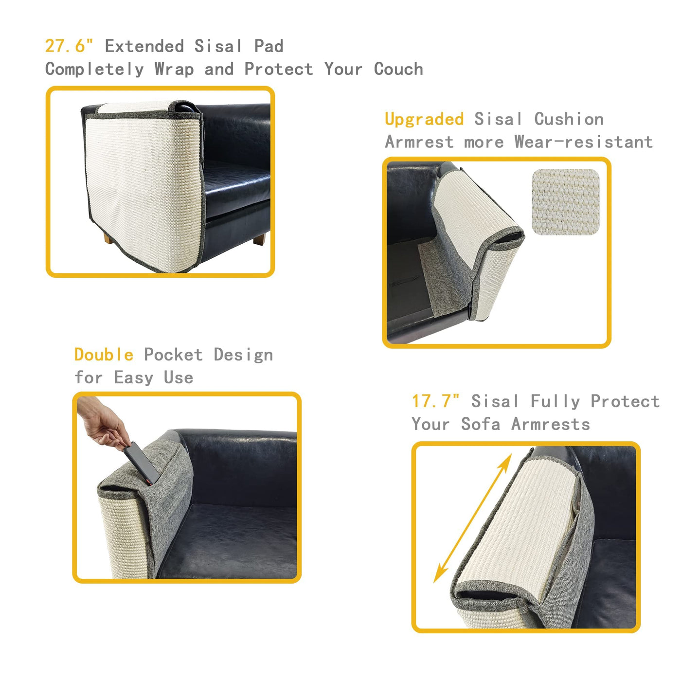 Please Note: Each Package Contains Only One Anti-Scratch Pad Suitable For The Left Or Right Side Of The Sofa.The Left Or Right Side Is Your Left Or Right Armrest When You Are Sitting On The Sofa. Not When You Face The Sofa.The Area Of The Sisal Part On The Side Of The Sofa Is 19.7''X27.6'', And The Area Of The Sisal Above The Armrest Of The Sofa Is 17.7'' X11.8''.This Is The Enlarged Size After The Upgrade.But &Nbsp; I F Your Sofa Is Relatively Large, It May Not Be Able To Cover It Completely. Product Feature-&Nbsp;Extended Sisal And Upgraded Sisal Armrests Can Completely Wrap And Protect Your Sofa&Nbsp;- Natural Materials, More Environmentally Friendly And Safer Than Plastic Materials.-&Nbsp;Easy To Clean, No Pins No Stickiness, More Safe And Clean.-&Nbsp;The Entire Cat Scratch Pad Can Be Washed, Easy To Clean And Maintainspecificationmaterial: Sisal + Thick Sofa Fabricsisal Sizeside Part Of Sofa :27.6''X19.7''Over The Arm Of The Sofa:17.7''X11.8''Color: Dark Graystyle: Left&Nbsp;Side Of The Sofapackage Included1 X 2022 Upgraded Couch Cat Scratcher Protector/Dark Gray/Left&Nbsp;Side Of The Sofait Has A Faint Smell Of Sisal Plant. If You Don'T Like The Smell, You Can Open The Package And Leave It In A Ventilated Place For One Day Before Using It.