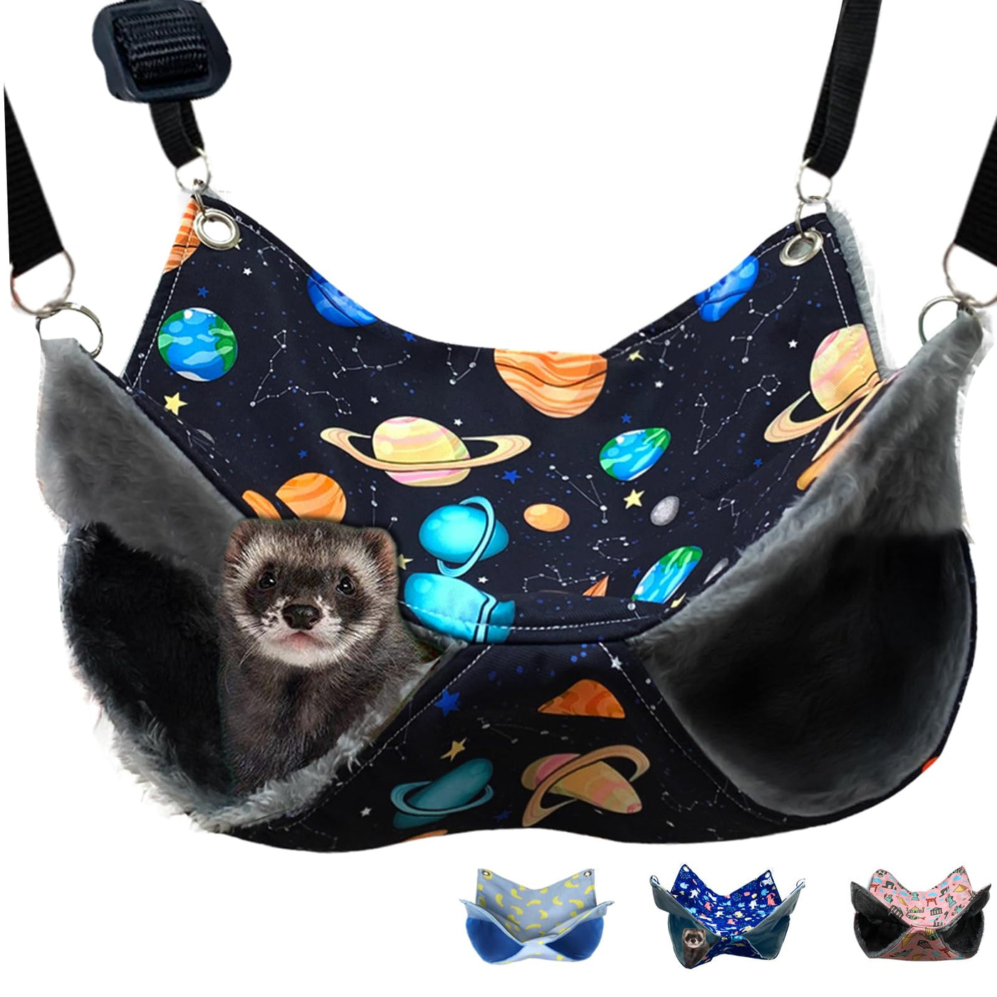Fulue Ferret Rat Hammock Bed, Ferret Guinea Pig Nation Cage Accessories Kit Set Staff House And Hideouts Cave For Guinea Pig Ferret (Black Galaxy)