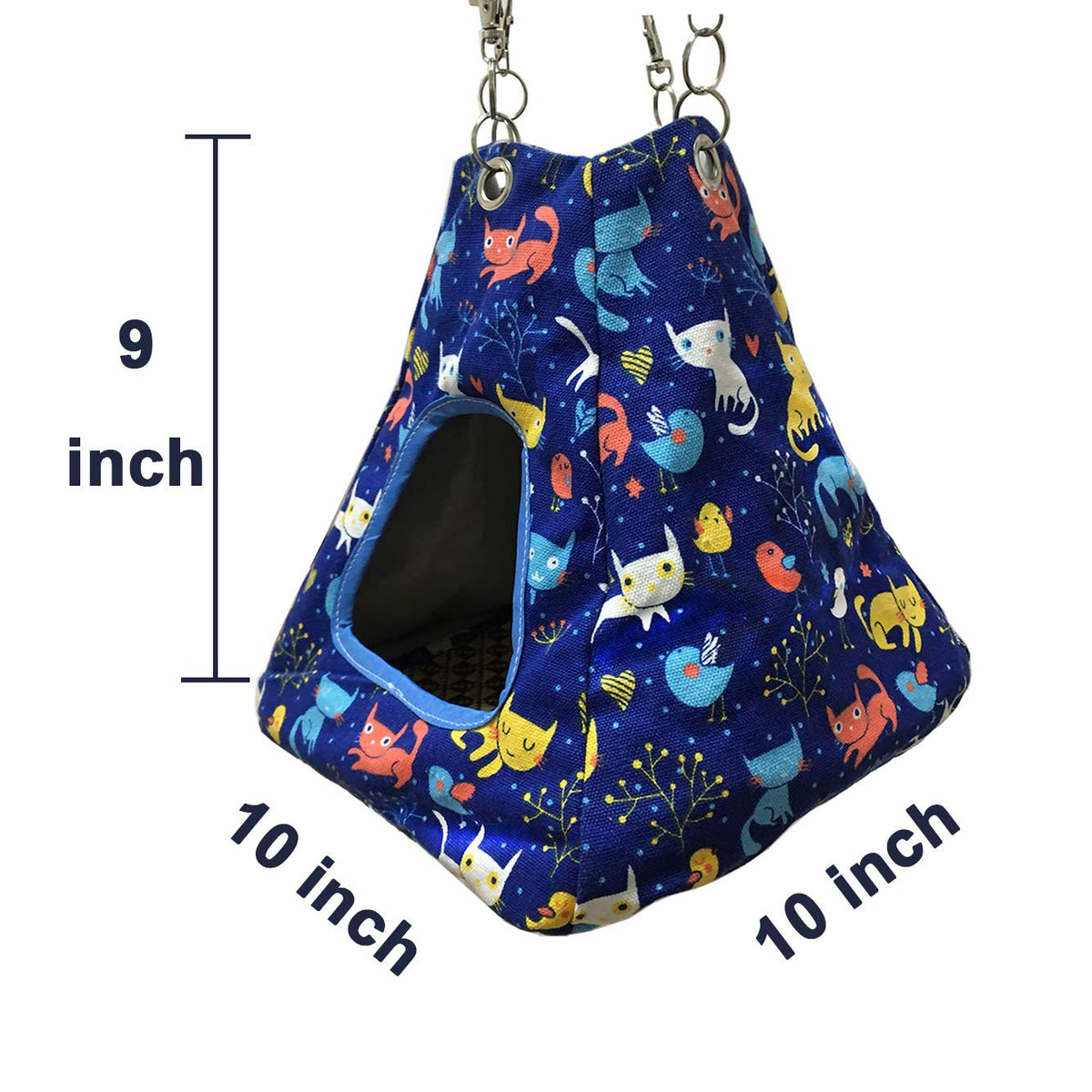 Q: What are the dimensions of the FULUE hammock?A: The FULUE hammock measures 10 inches in length, 10 inches in width, and 9 inches in height, making it the perfect size for small pets to snuggle and sleep comfortably.