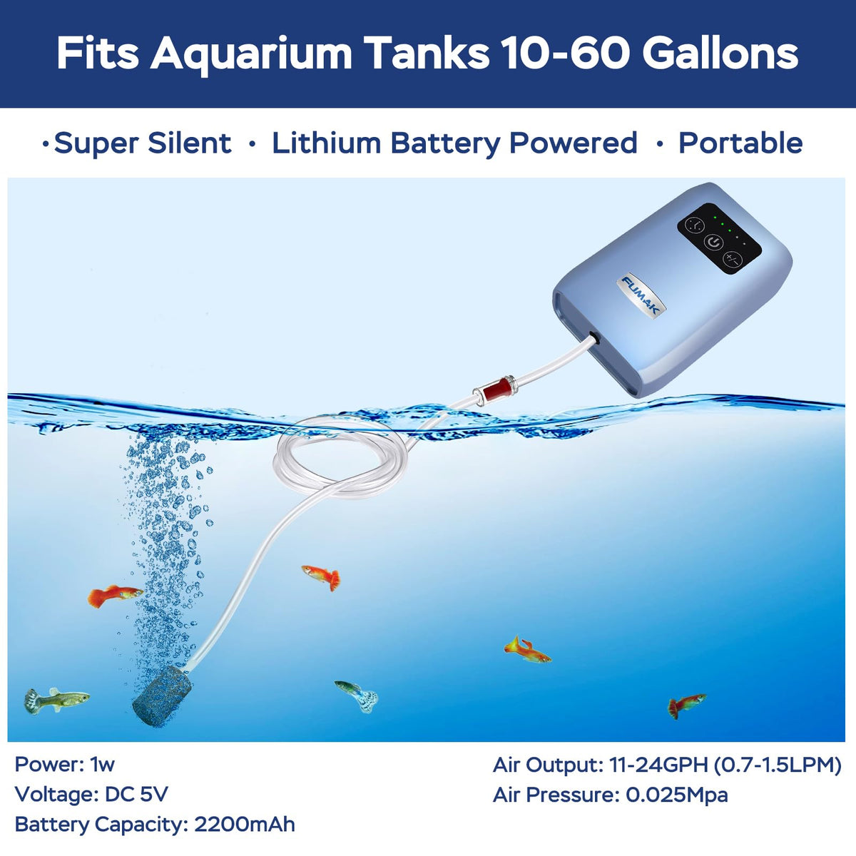 FUMAK Aquarium Air Pump, USB Rechargeable Lithium Battery Powered Portable Air Pump for Fish Tanks up to 60 Gallons, AC/DC Dual