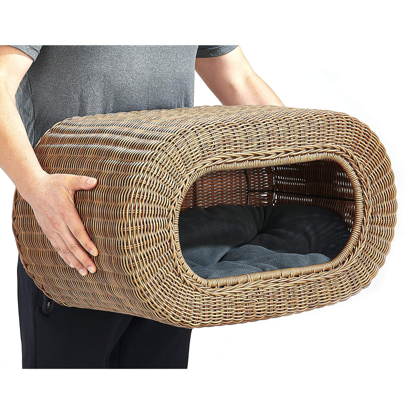 Overview Cat Hideaway House From D+ Garden Is Made From Resin Wicker Rattan Materials That Are Hand Woven And Rigid. The Cat Bed House Looks Like A Big Bed Cave But With Wider Entrance, Excellent Ventilation. The Two-Way Cat House Entry Offers Indoor Cats Kitty Comfortable Yet Private Sleeping Pod Bed, Also A Kennel-Like Playpen To Interact With Cat Owners.&Nbsp; What'S Included Wicker Cat Bed House Soft Bed Cushion Scratch Pad (For Cat) Description There Are Three Different Types Of Cat House Beds: Fully Enclosed Like Cat Cave, Peekaboo Tan Or White. With Peekaboo Cat House, Pet Can See Through Rattan And This Is Typically For Super Vigilant Pets. The Fully Enclosed Cat House Bed Offers Complete Privacy And The 'Peekaboo' Offers Much Interactive Play Through Cave Holes. Specifications Brand: D+ Garden Collections: Cat Hideaway House Dimensions: 24.5W X 13.3D X 13.8H In. Opening Dimensions: 15.5W X 6.8H In. Materials: Resin Rattan That Are Safe To Pets Style: Pod, Capsule, Cat Cave, Cat Hideaway House Weight: 8.4 Lb. Assembly No Assembly Required